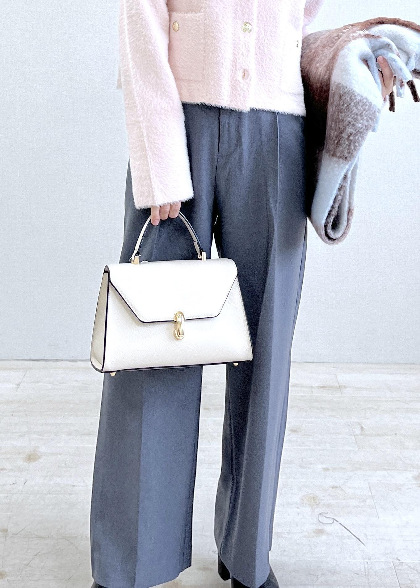 バッグやストールをアイボリーやブラウン系でまとめると、全体がやわらかくまとまります◎