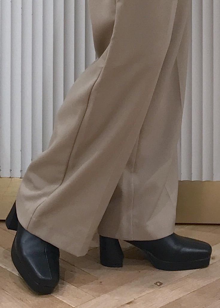 フラットシューズに合わせても引きずりませんが、気になる場合は少しヒールのある靴を合わせるのがおすすめです。