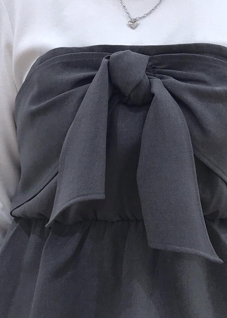 胸の下辺りにゴムが入っており、柔らかいゴムなので楽ちんな着心地です。 -