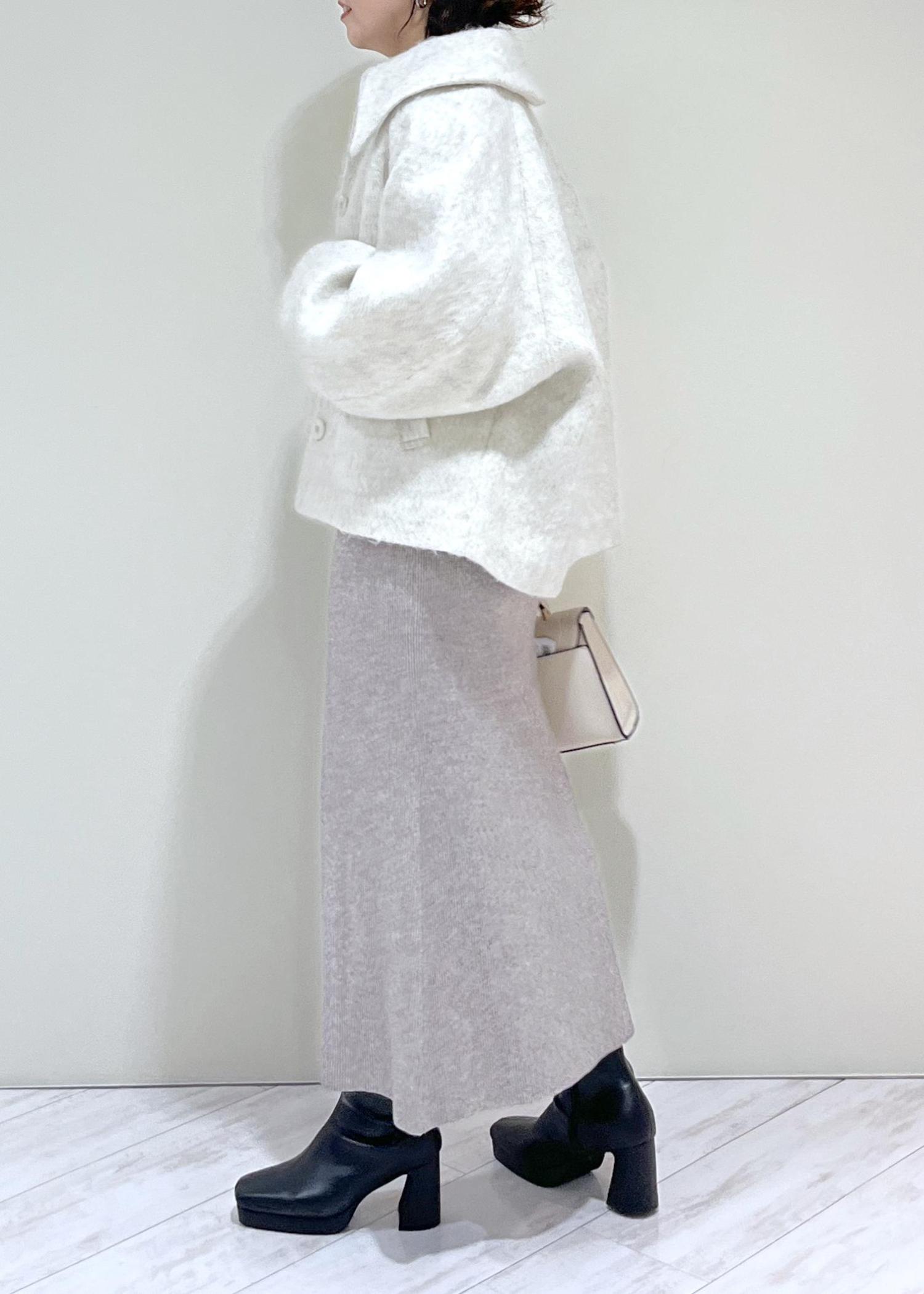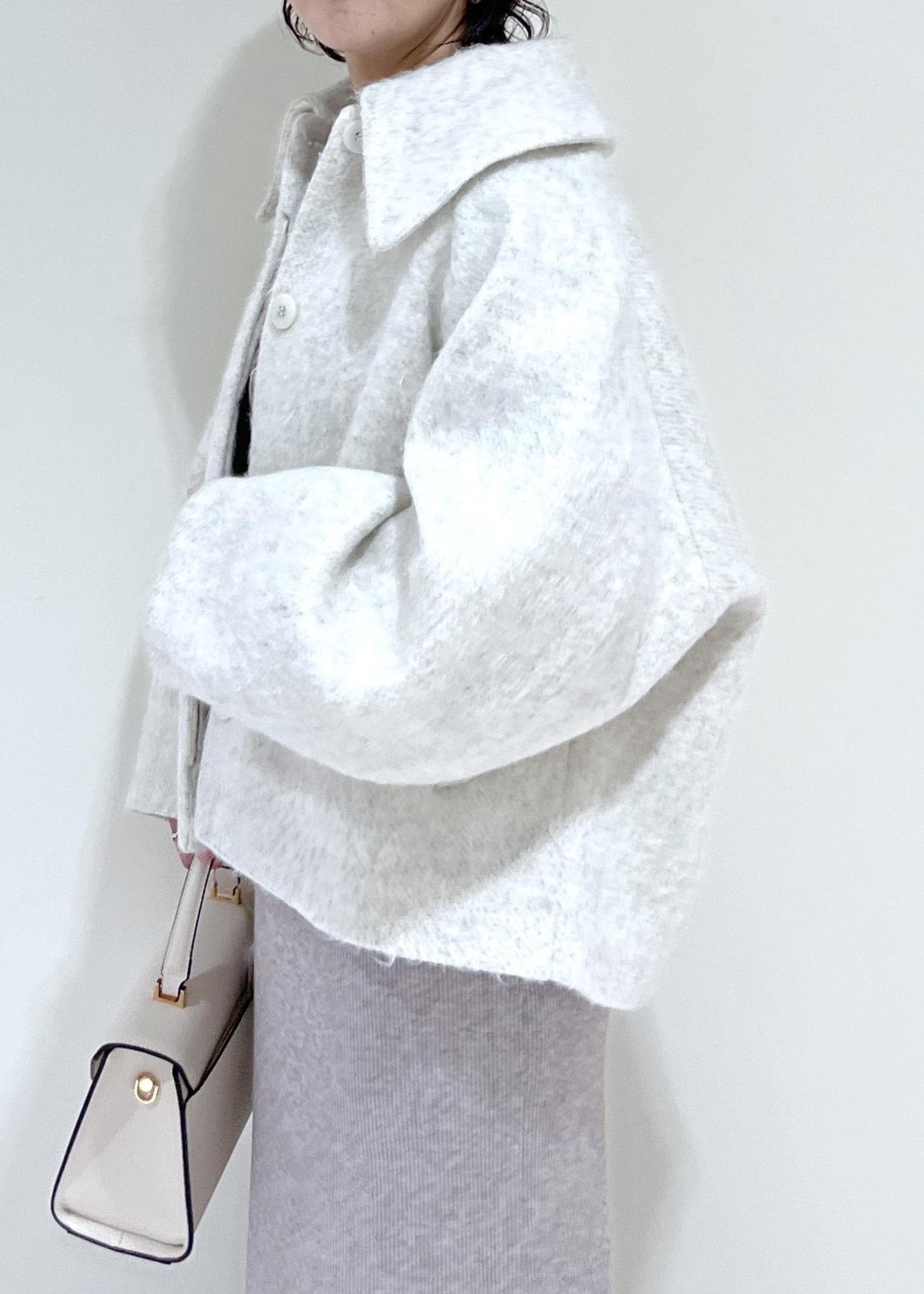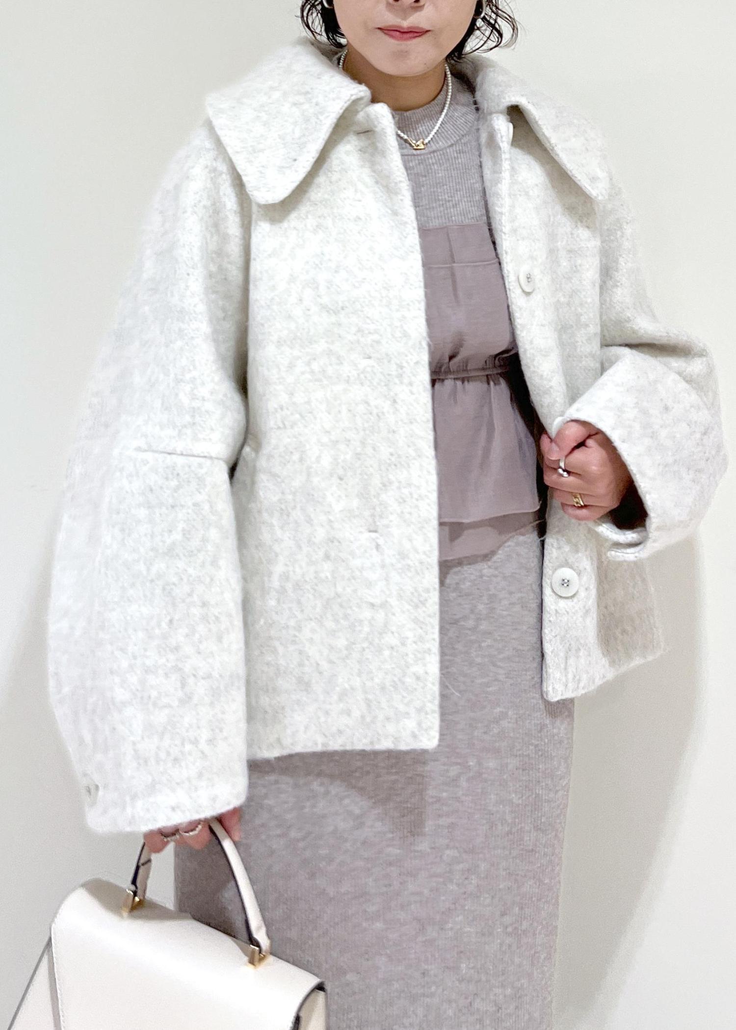 ビックカラーで袖や全体的に丸いシルエットがかわいいコートです。
