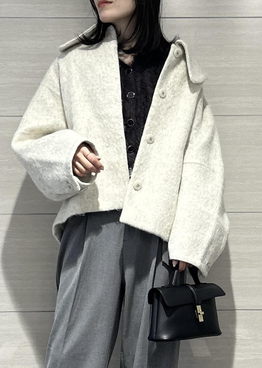 NEW!VIS【アウター総選挙1位】ビッグカラーモモンガシャギーショートコートオフホワイト / M¥10,989レビューゆったりめな作りで厚手のニットもごわつかずすっこりと着用できます。