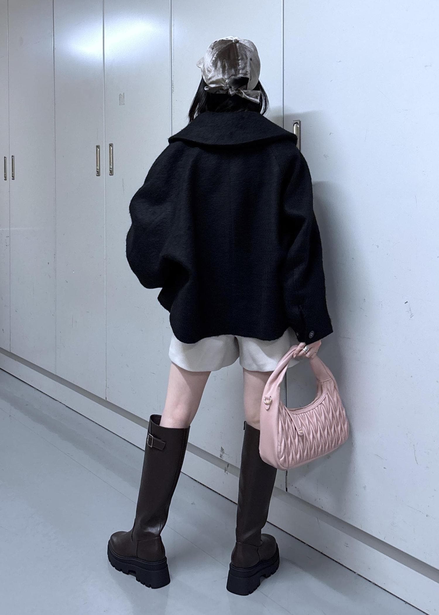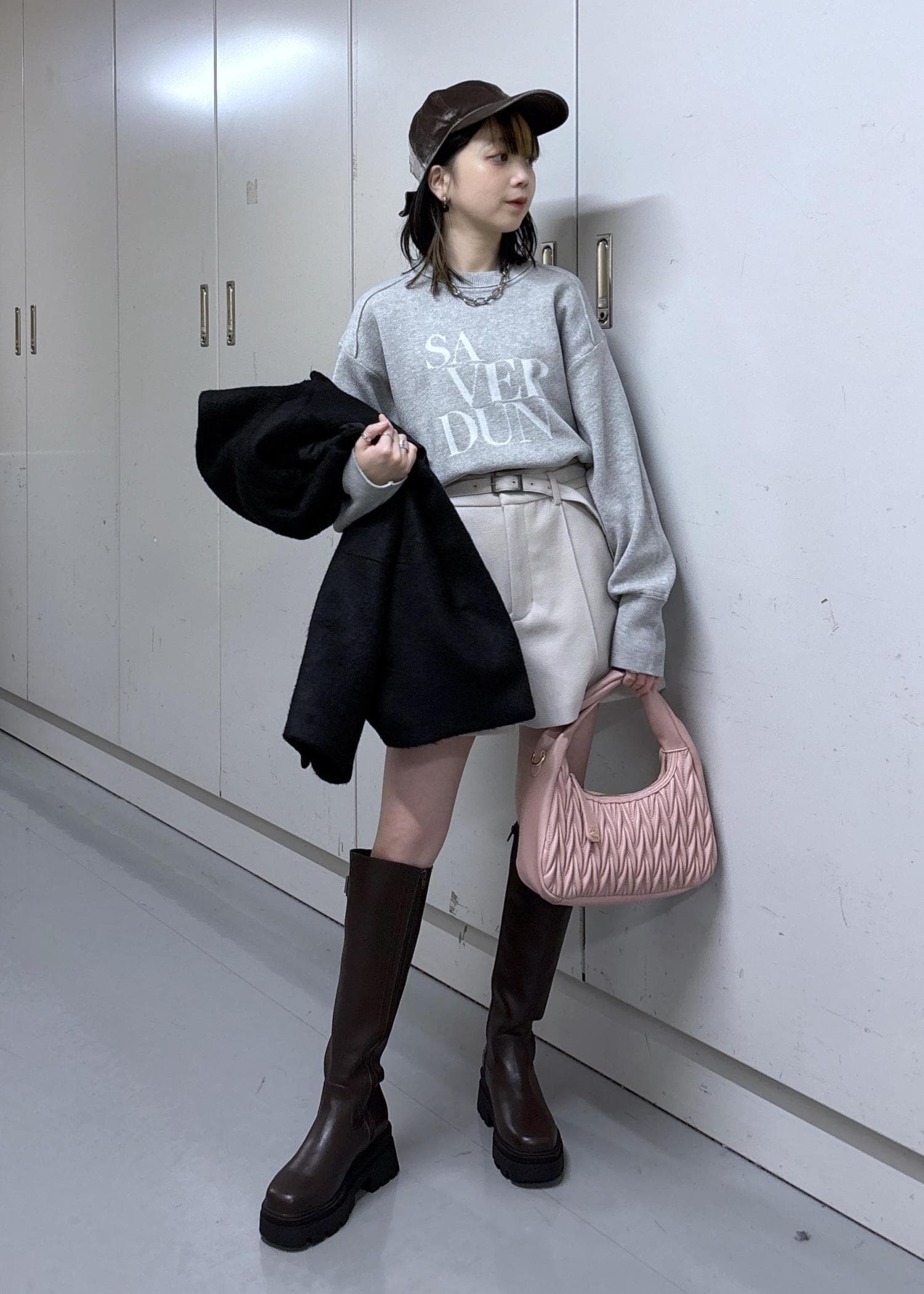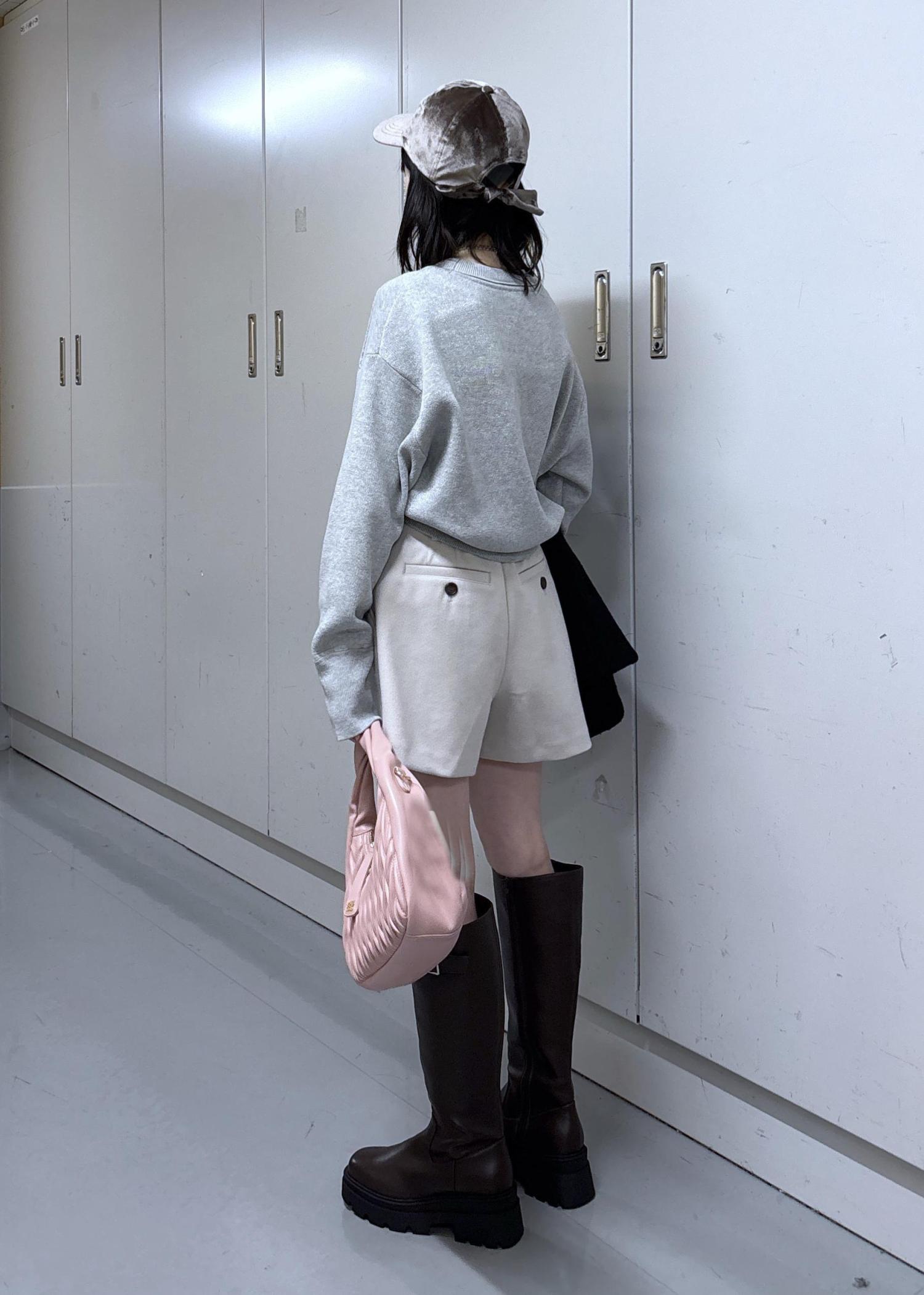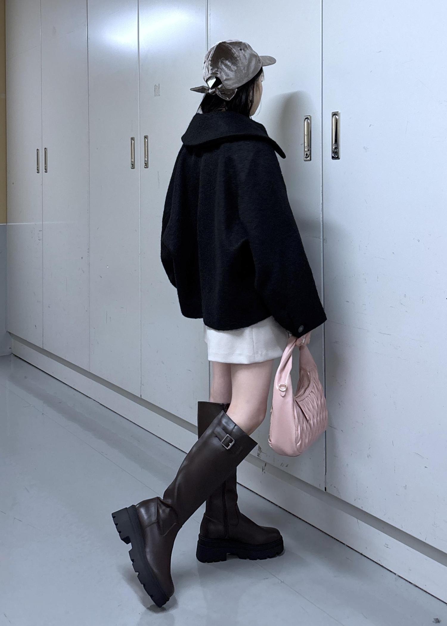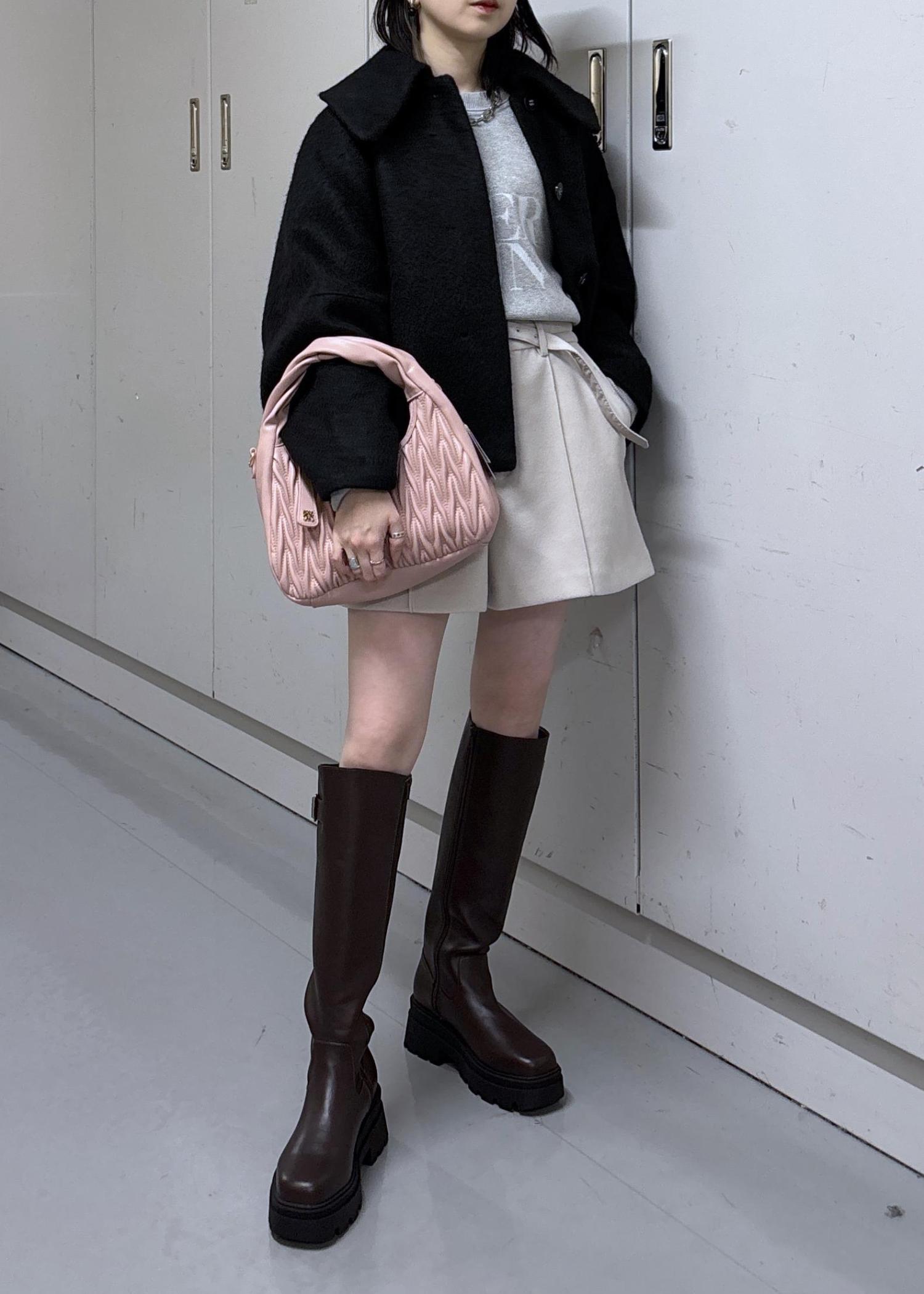 淡めのカラーにアウターとブーツで暗めのカラーを合わせてぽやっとならないようにしました◎
