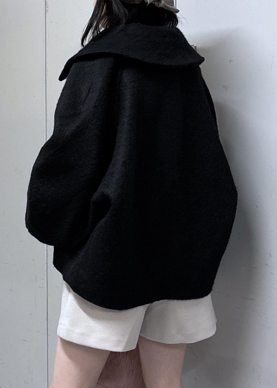 VIS【アウター総選挙1位】ビッグカラーモモンガシャギーショートコートブラック / S¥10,989レビュー155cm、Sサイズ着用。おしりは隠れている気がします。