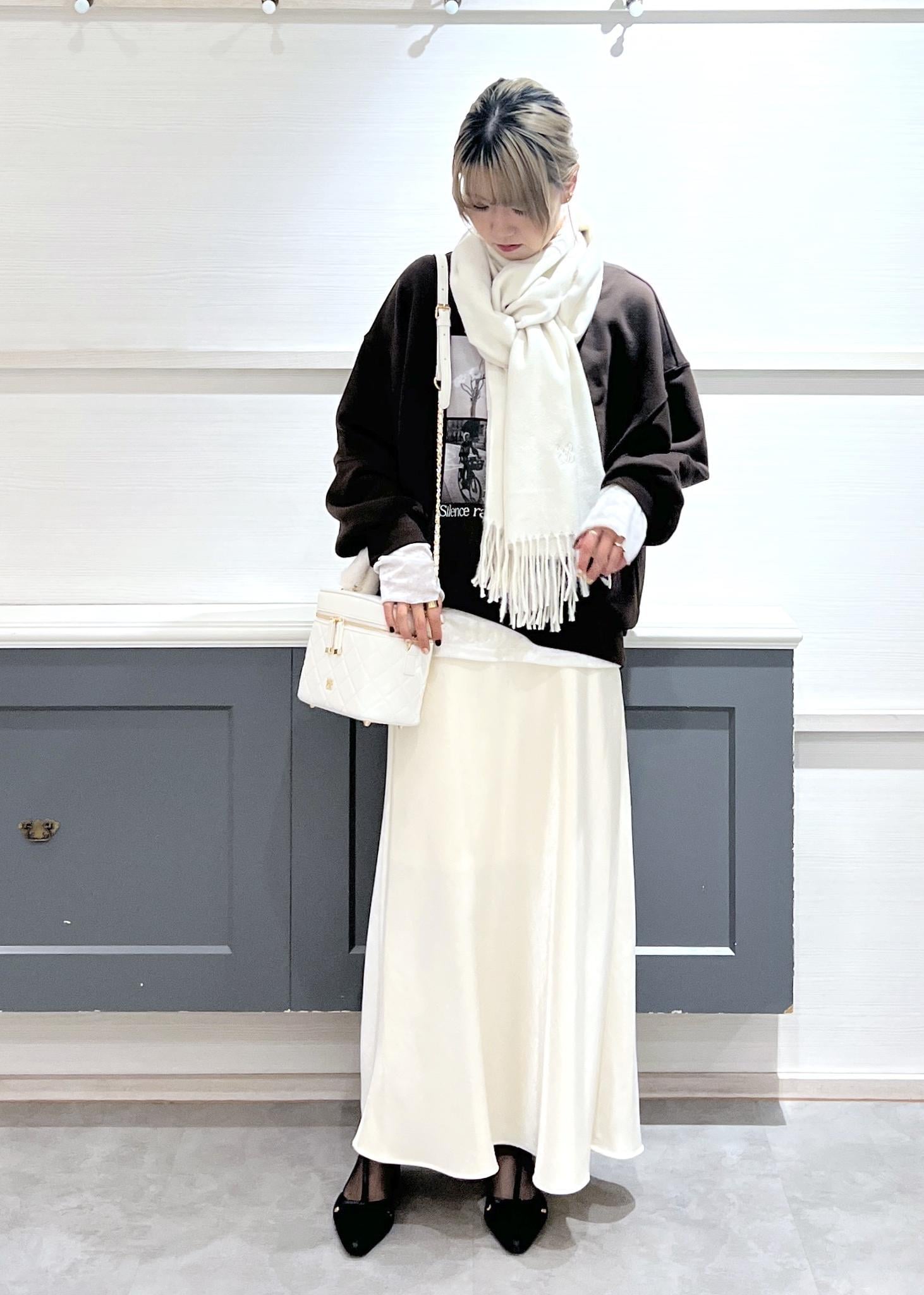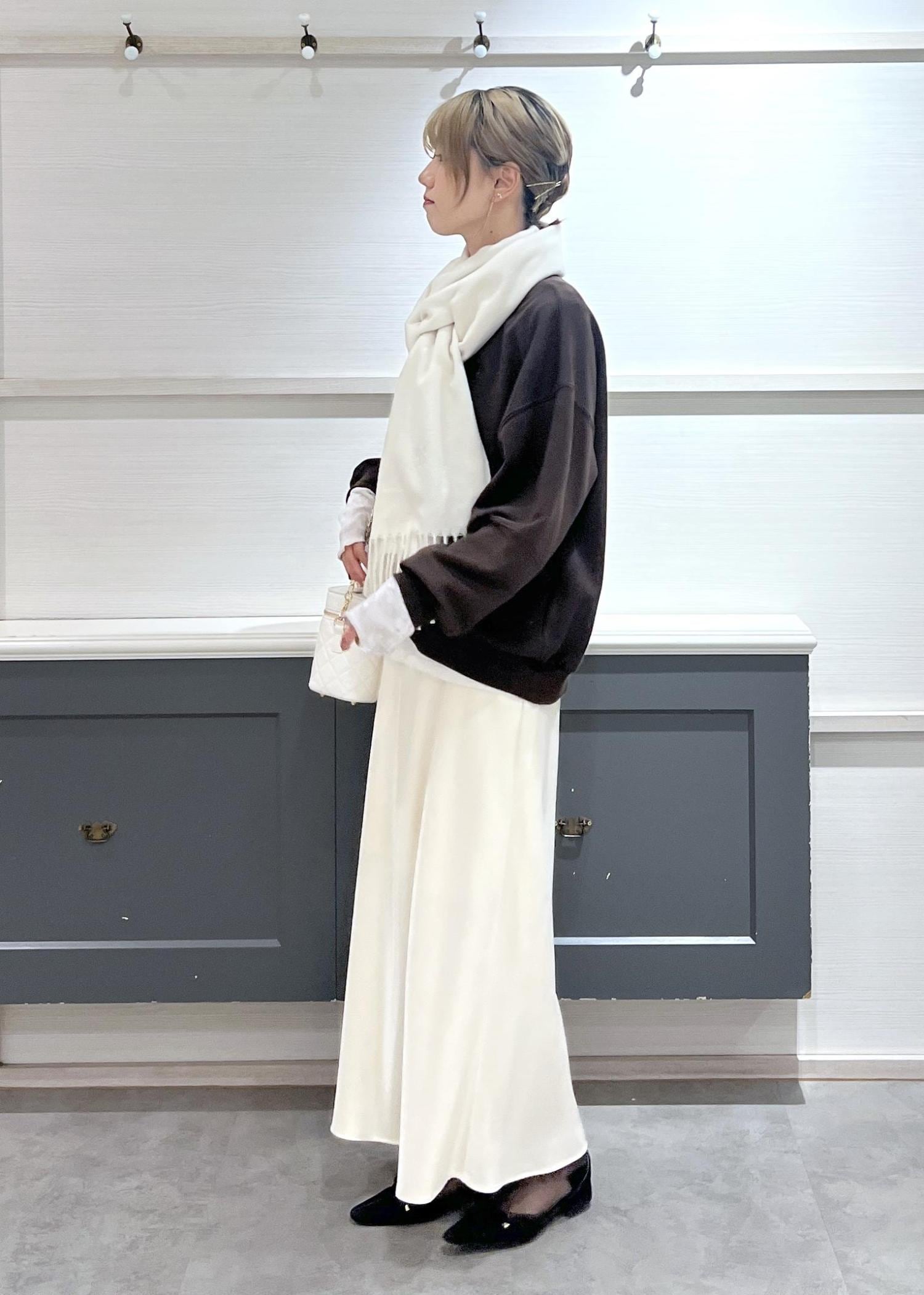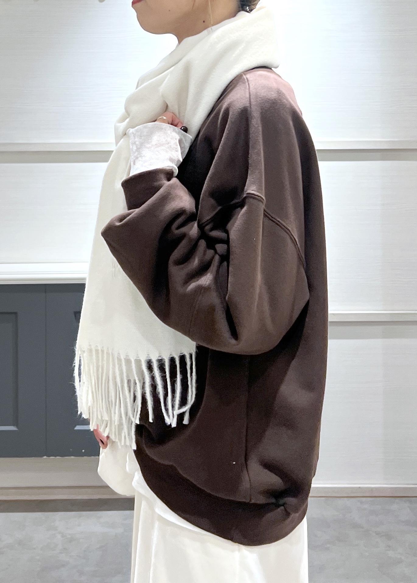 アームホールにゆとりがあるのでシアーインナーやカットソー、ニットタートルなどレイヤードスタイルもおすすめです! -