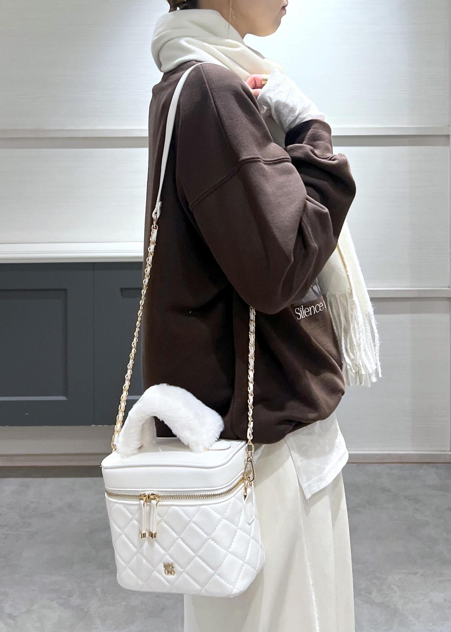 VISファーハンドルキルティング&ツイードバニティバッグ/2WAYオフホワイト / F¥7,909レビューハンドルのファーがかわいいバニティバッグです。
