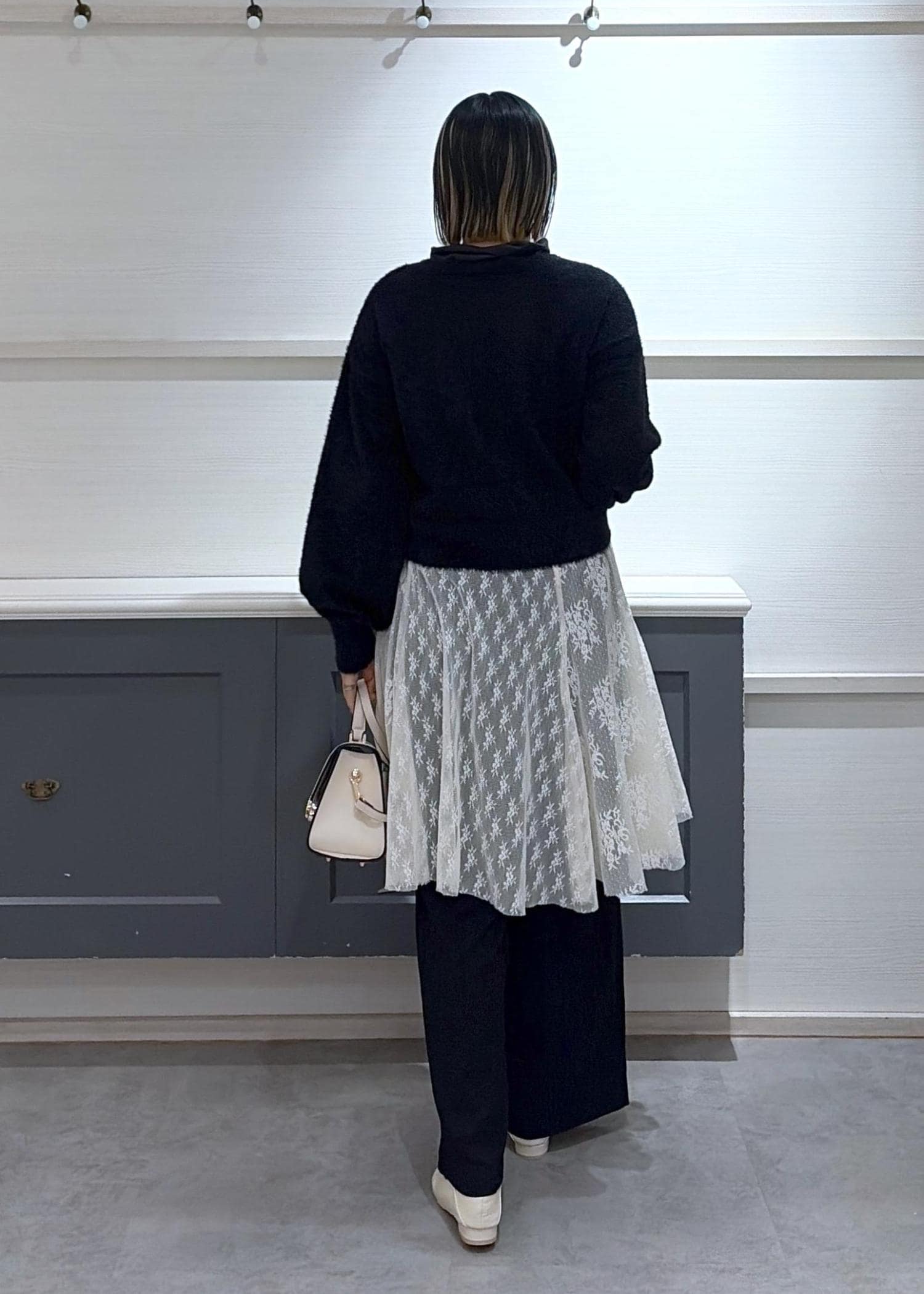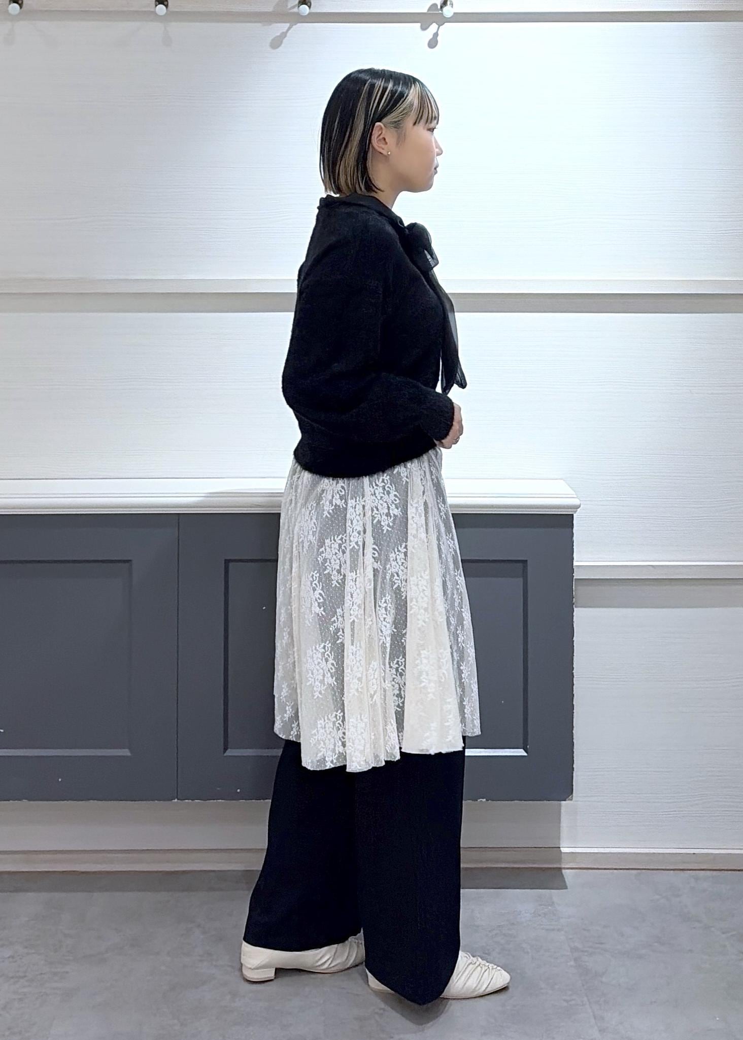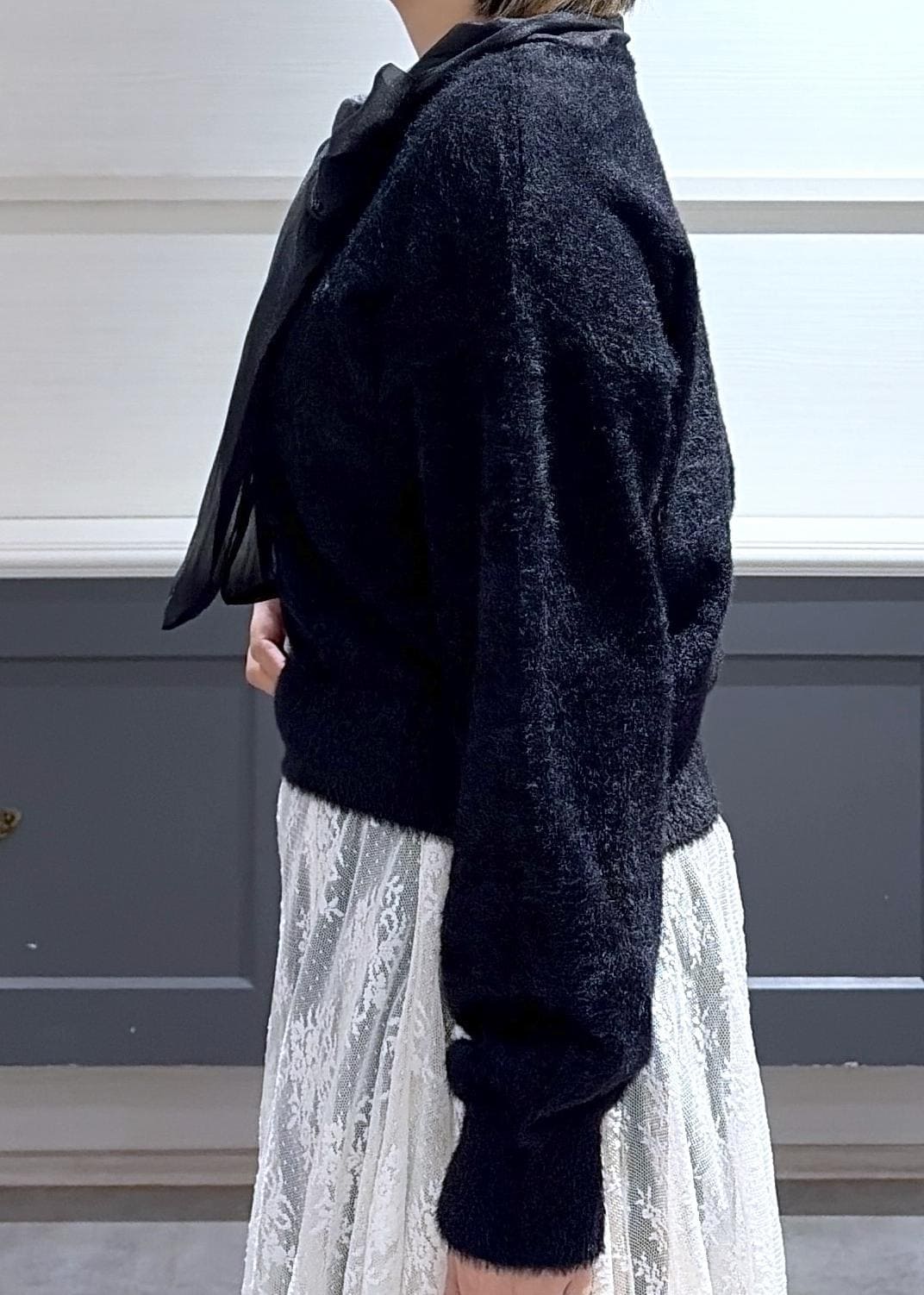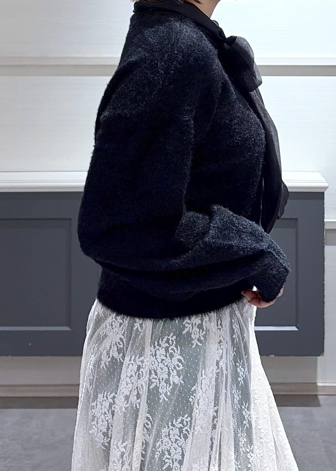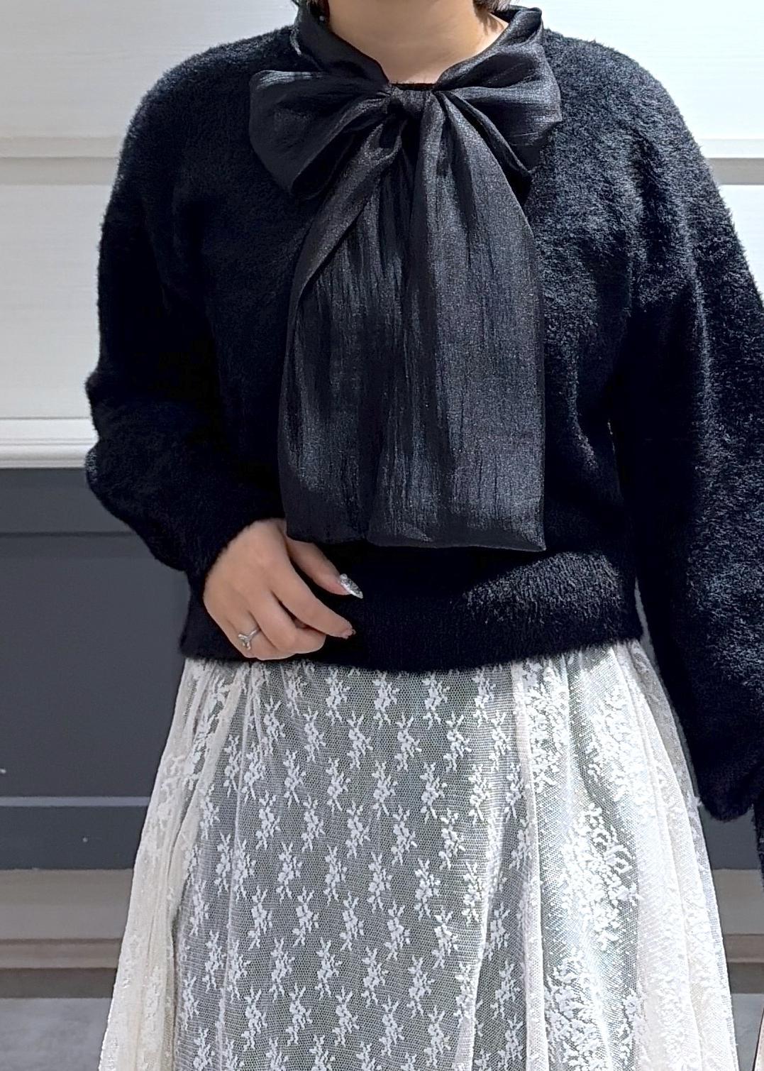 シアーボウタイリボン付きフェザーニットプルオーバー/2WAY・イージーケア