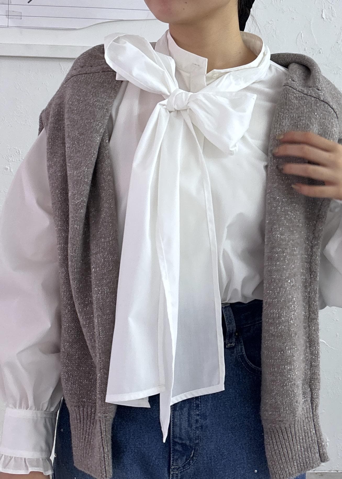 チェック&デニムアソートボウタイリボン付きスタンドカラーシャツ