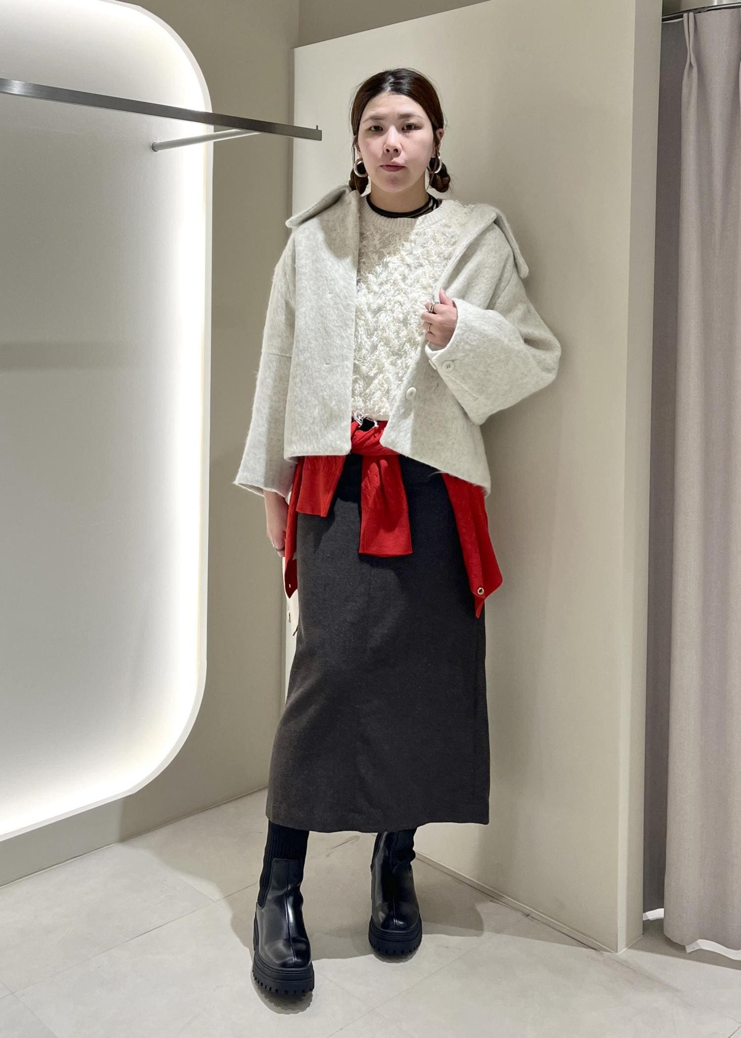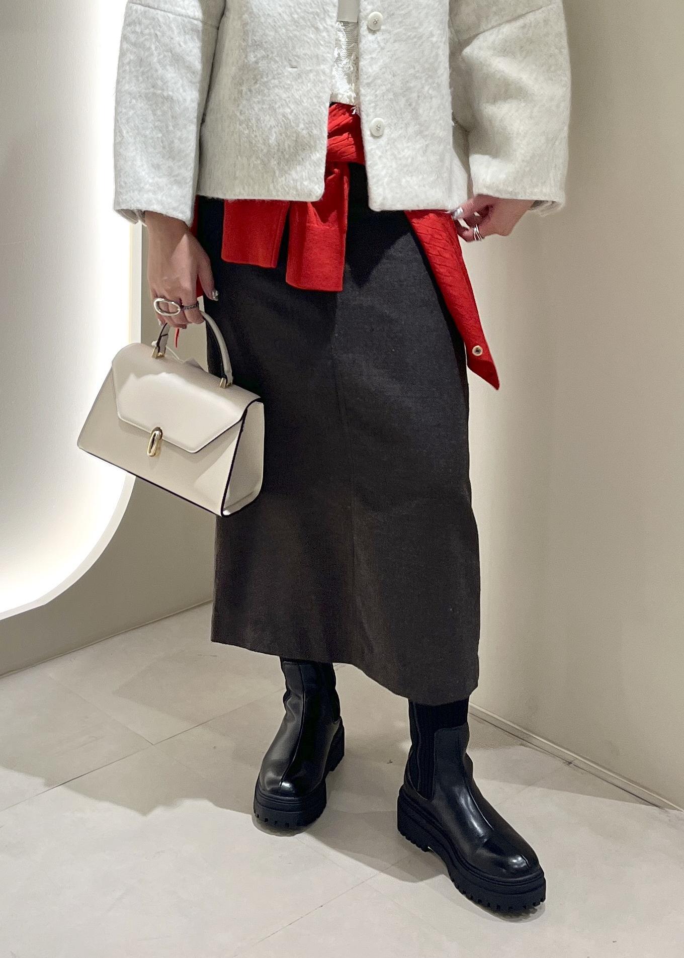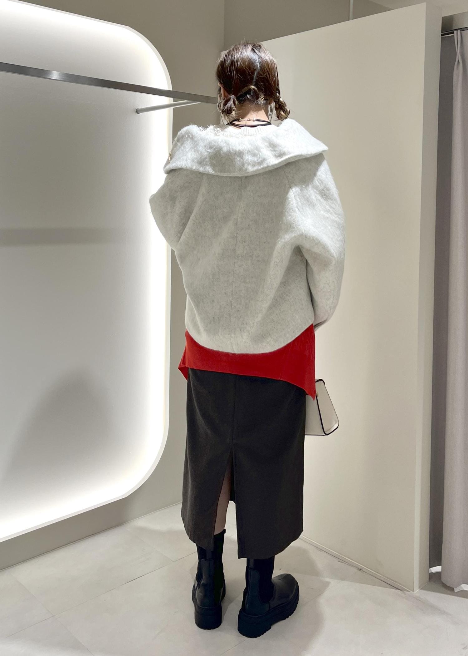 スリットも大きく入っているので足捌きもしやすいです。女性らしいシルエットになっており、綺麗めにもカジュアルにも合わせやすそうです! -