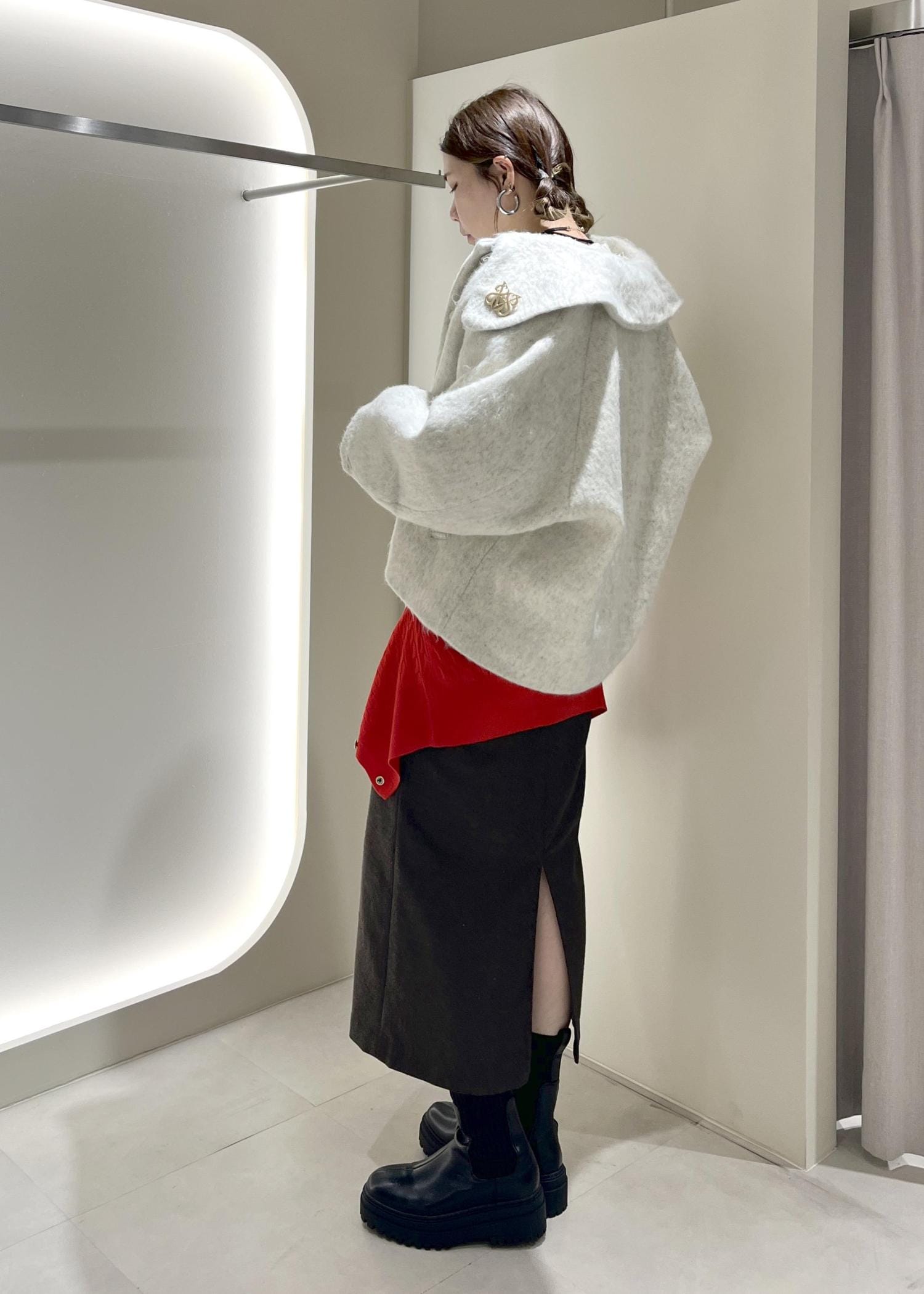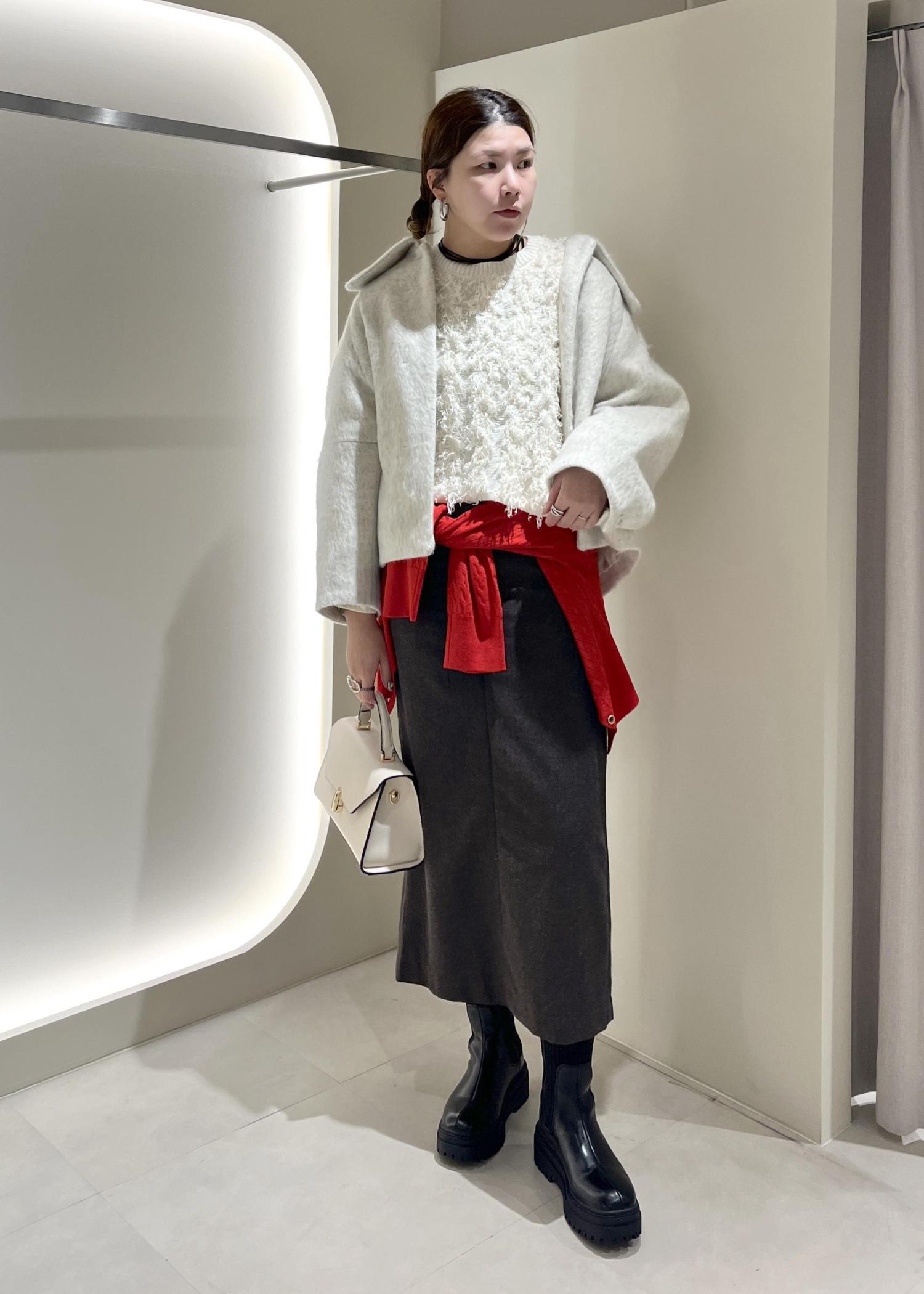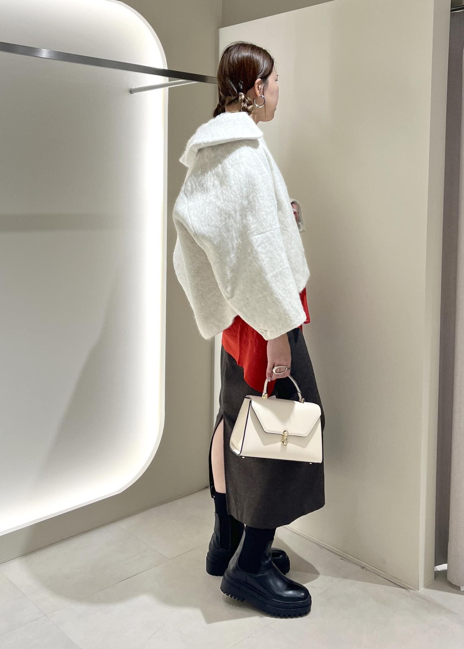 スリットも大きく入っているので足捌きもしやすいです。女性らしいシルエットになっており、綺麗めにもカジュアルにも合わせやすそうです! -