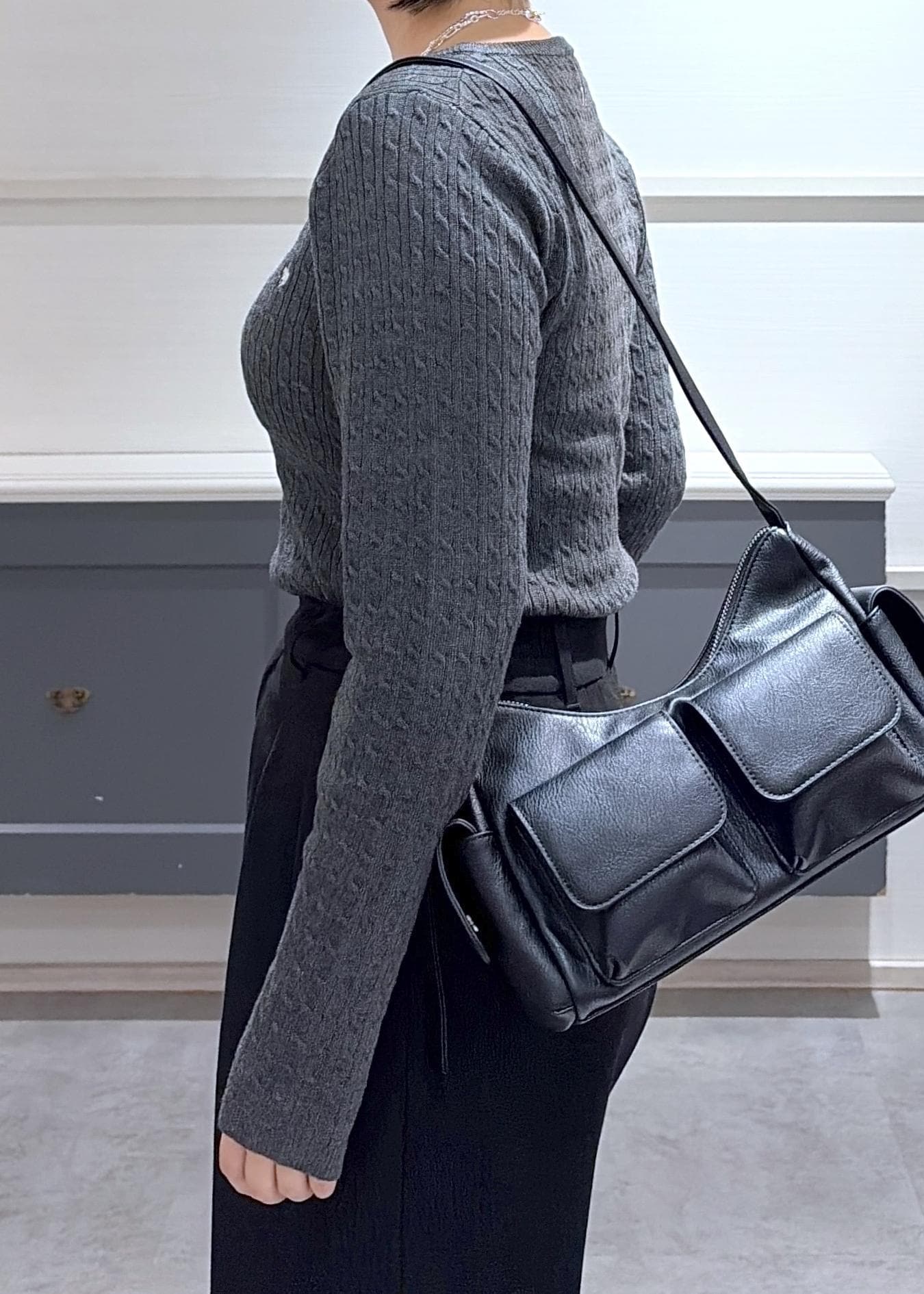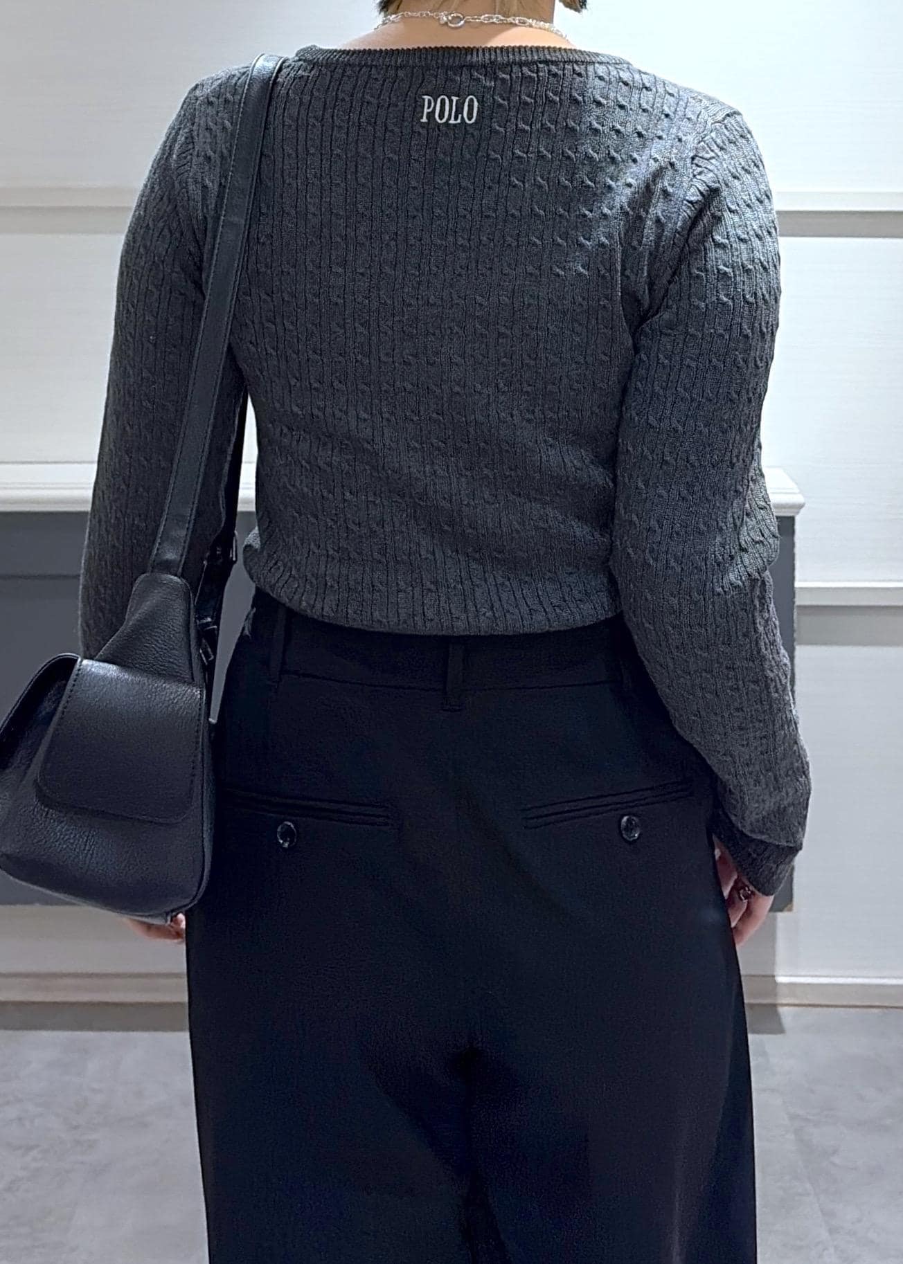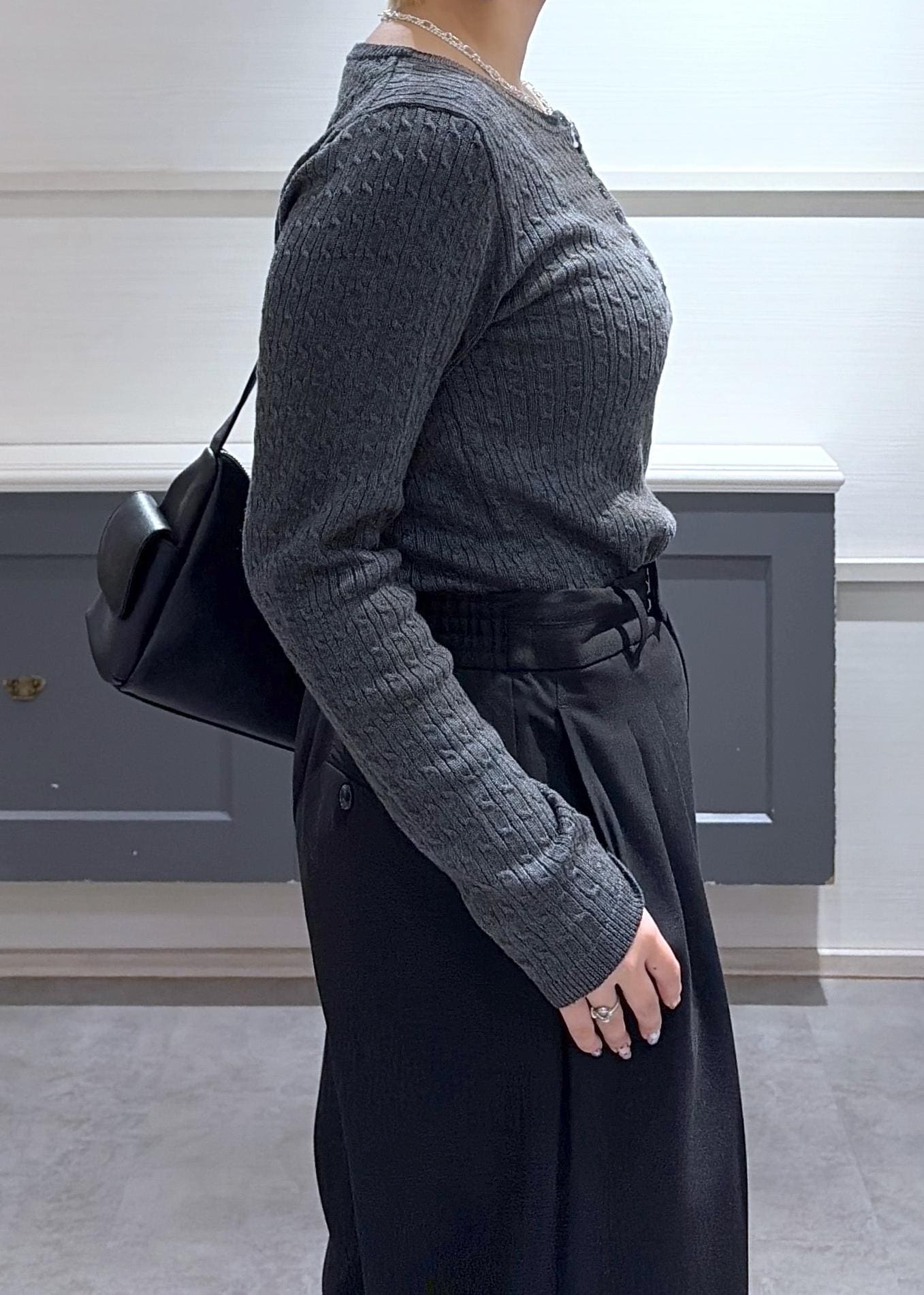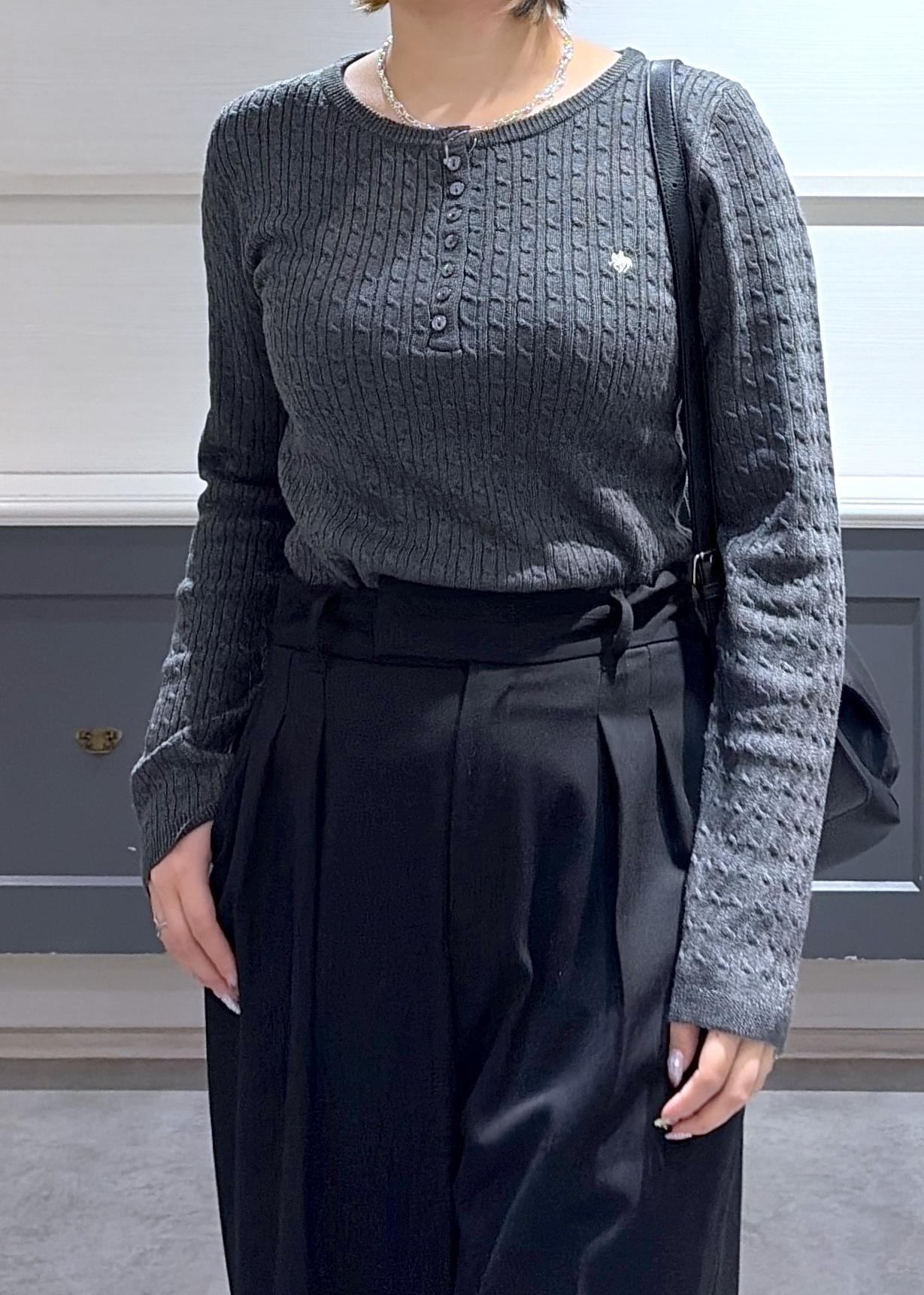 VIS【POLO BCS】VIS別注ヘンリーネックミニケーブルニットトップスチャコール / F¥6,600レビューぴちっとしすぎないゆったりとした大きさです!