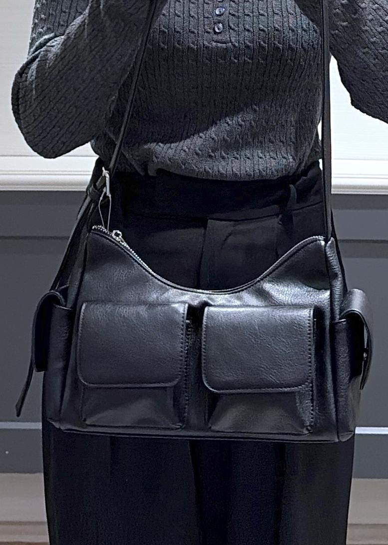 VIS【2WAY】ビンテージ合皮クアトロポケットショルダーバッグブラック / F¥6,919レビューダメージ加工がかっこよく、