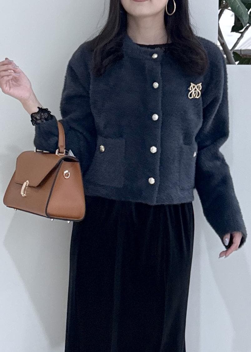 VIS接結ミニフェザーニットジャケットカーディガン/一部WEB限定カラーネイビー / F¥6,919レビュー短めの毛足でモチモチした素材。ずっと触っていたくなります♡