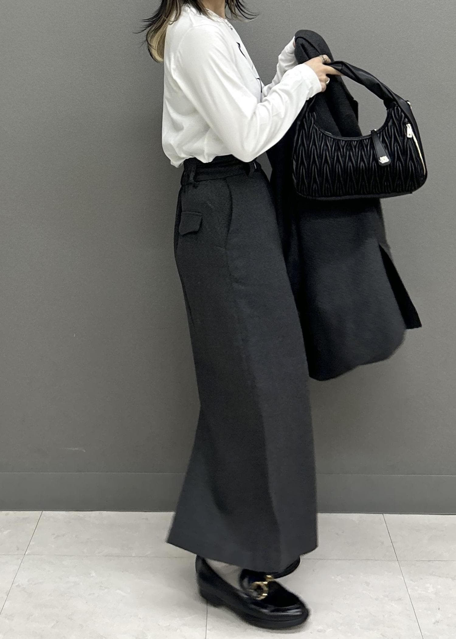 腰回りのラインはあまり拾わなかったので、スッキリキレイなIラインシルエットでした◎ -