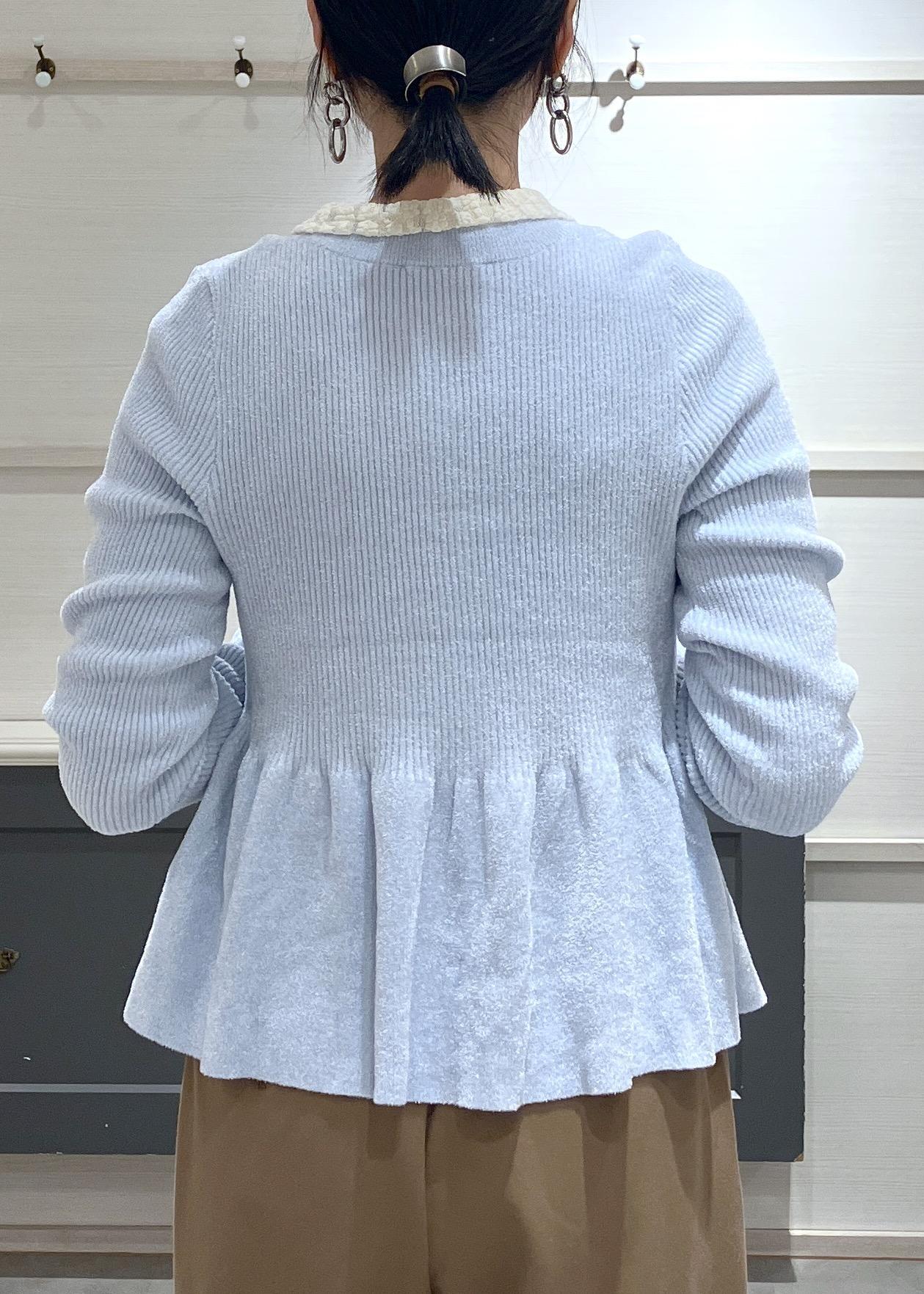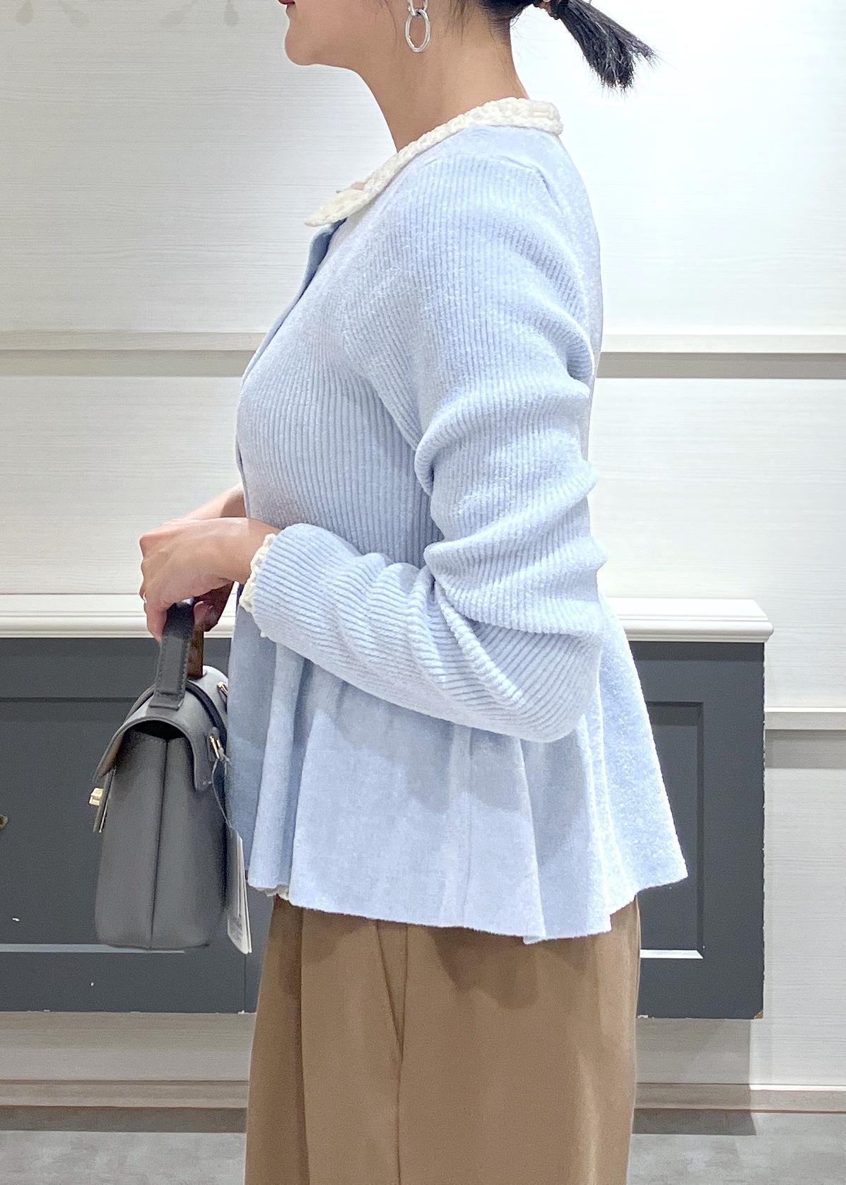 イエベ秋の私でもブルーのペプラムトップスにホワイトの襟付きインナーをしのばせると顔色も明るく着用出来ました♪