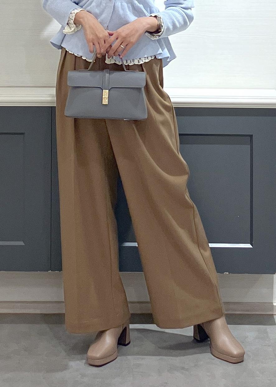 ペプラムのフェミニンな印象もワイドパンツでカッコよく着用出来ました♪