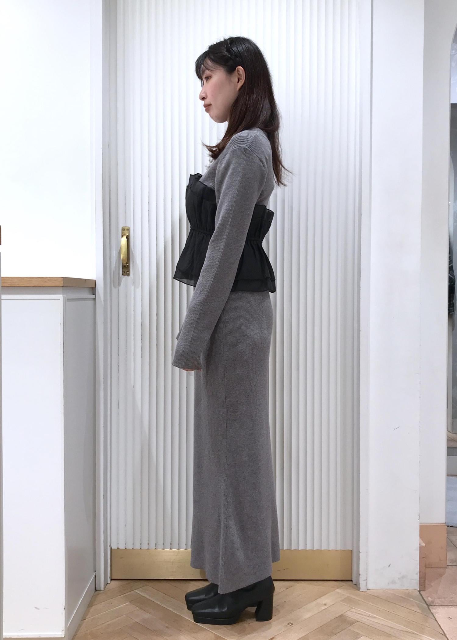 トップスは、デニムと合わせてカジュアルにも着回せますし、スカートもシャツやカーディガン等色々着回せるアイテムなので、是非店頭でチェックしてみて下さいね。