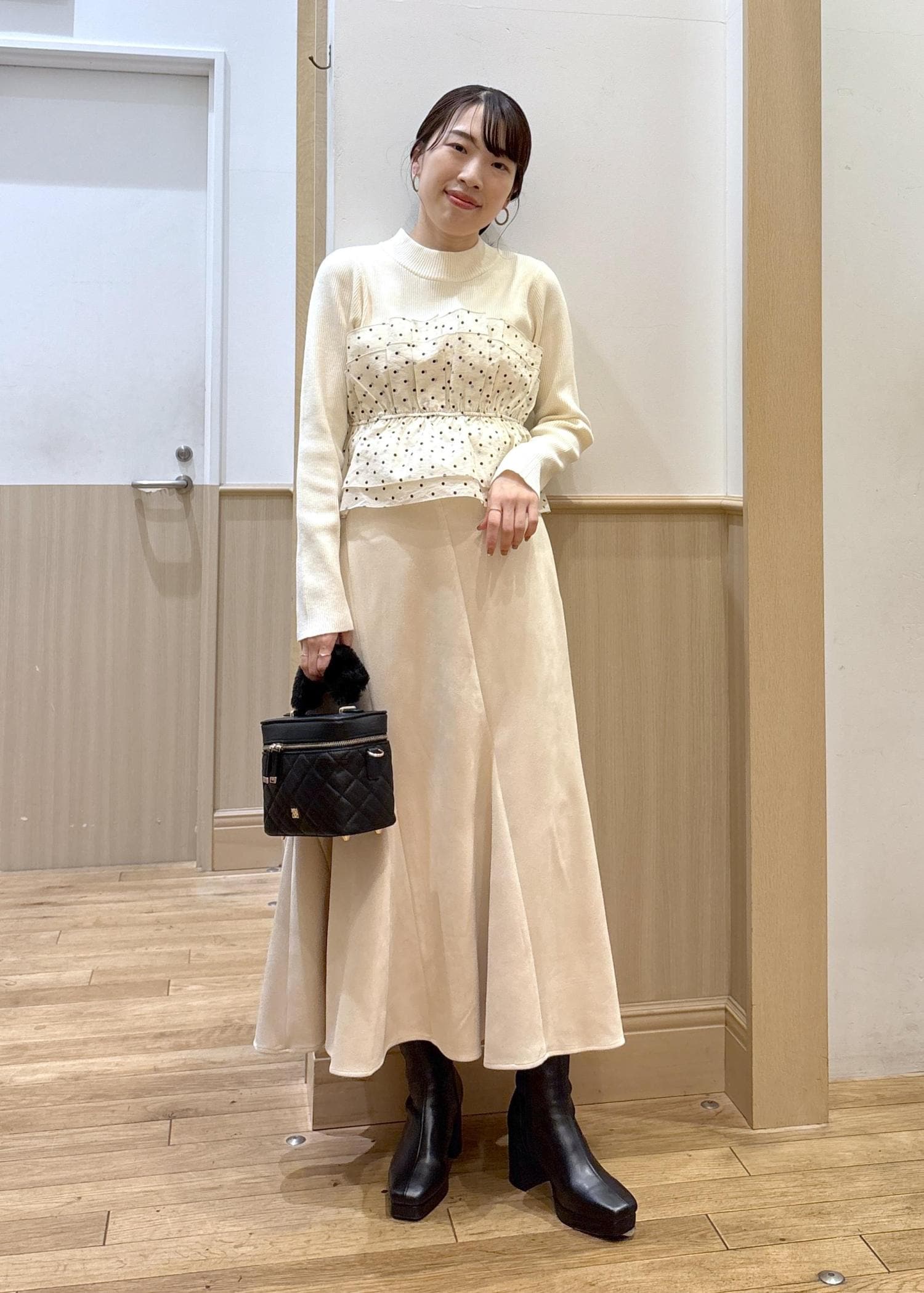 VISエスカルゴ切替スエードライクスカートオフホワイト / M¥7,689レビューフレア感がとても綺麗なスカートです!