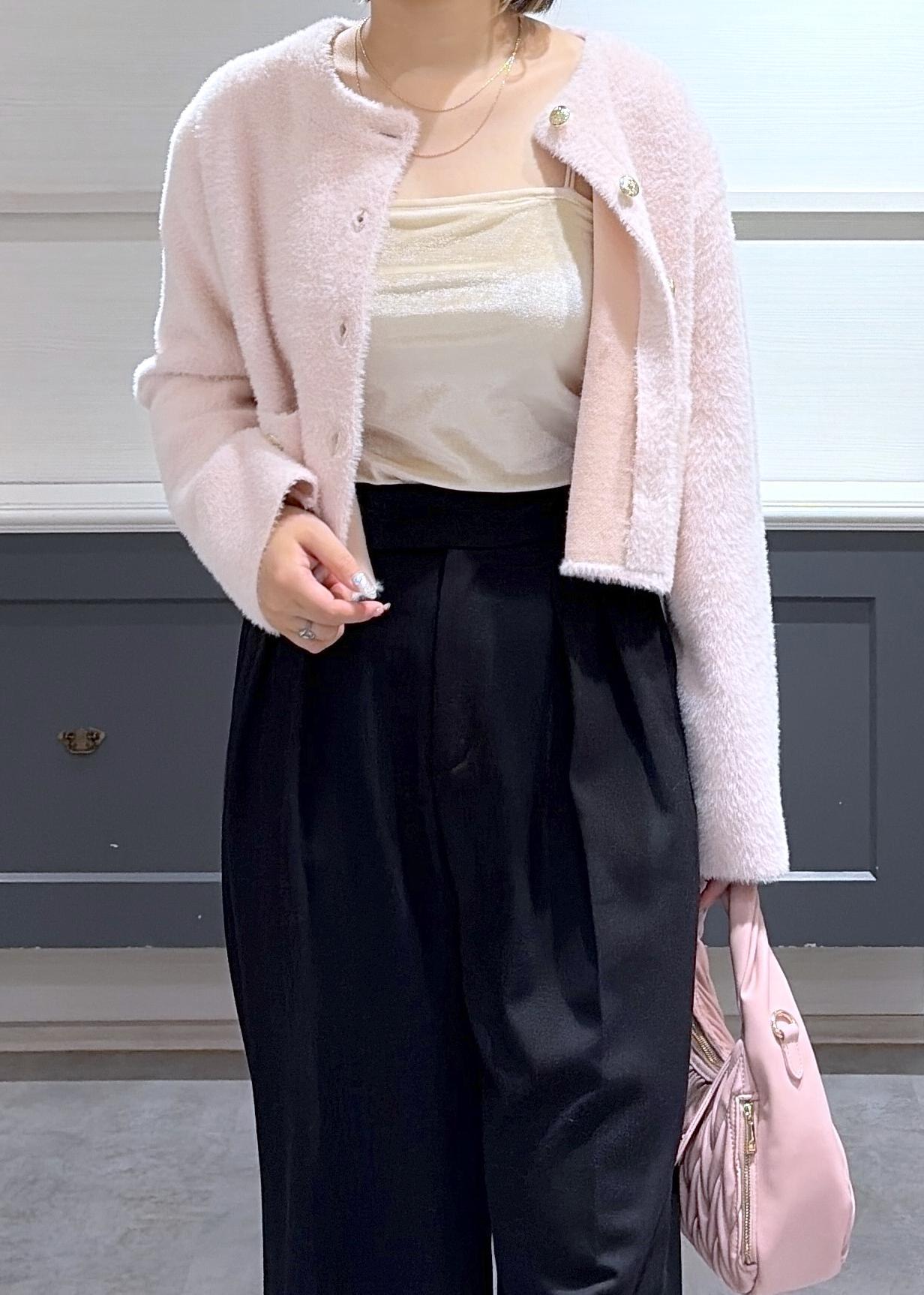 VIS接結ミニフェザーニットジャケットカーディガン/一部WEB限定カラーピンク系 / F¥6,919レビュー丈が短すぎず長すぎないので