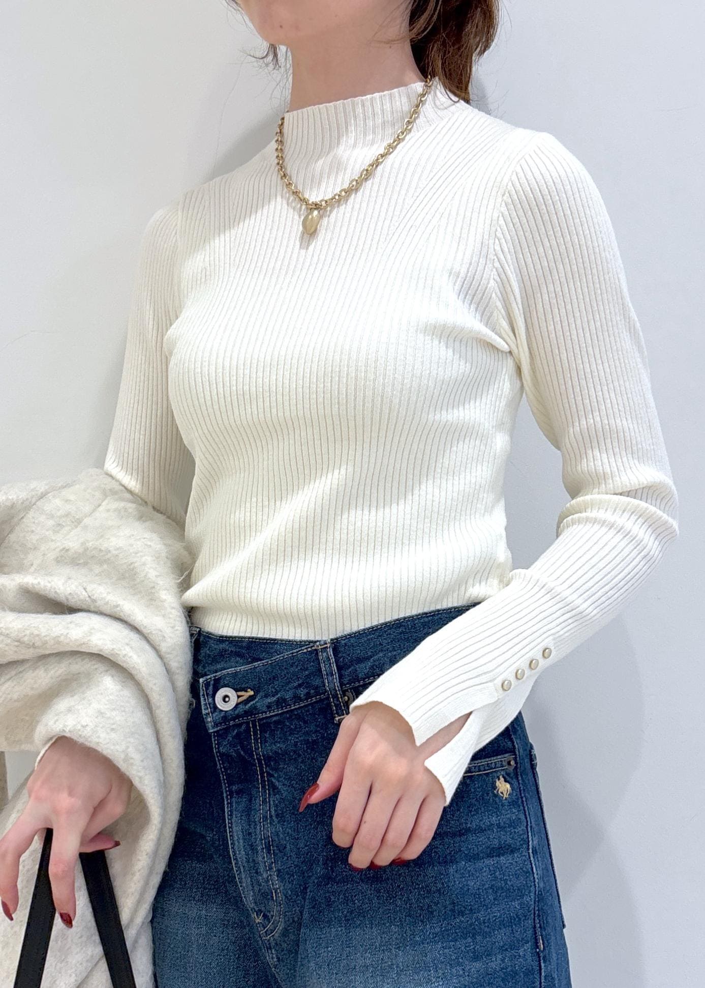 VISスリーブ釦アクセントリブニット/WEB限定FSサイズ・静電気防止オフホワイト / F¥4,389レビュー柔らかく伸縮性がある素材感で着心地良いです。程よいフィット感で女性らしいシルエットです。