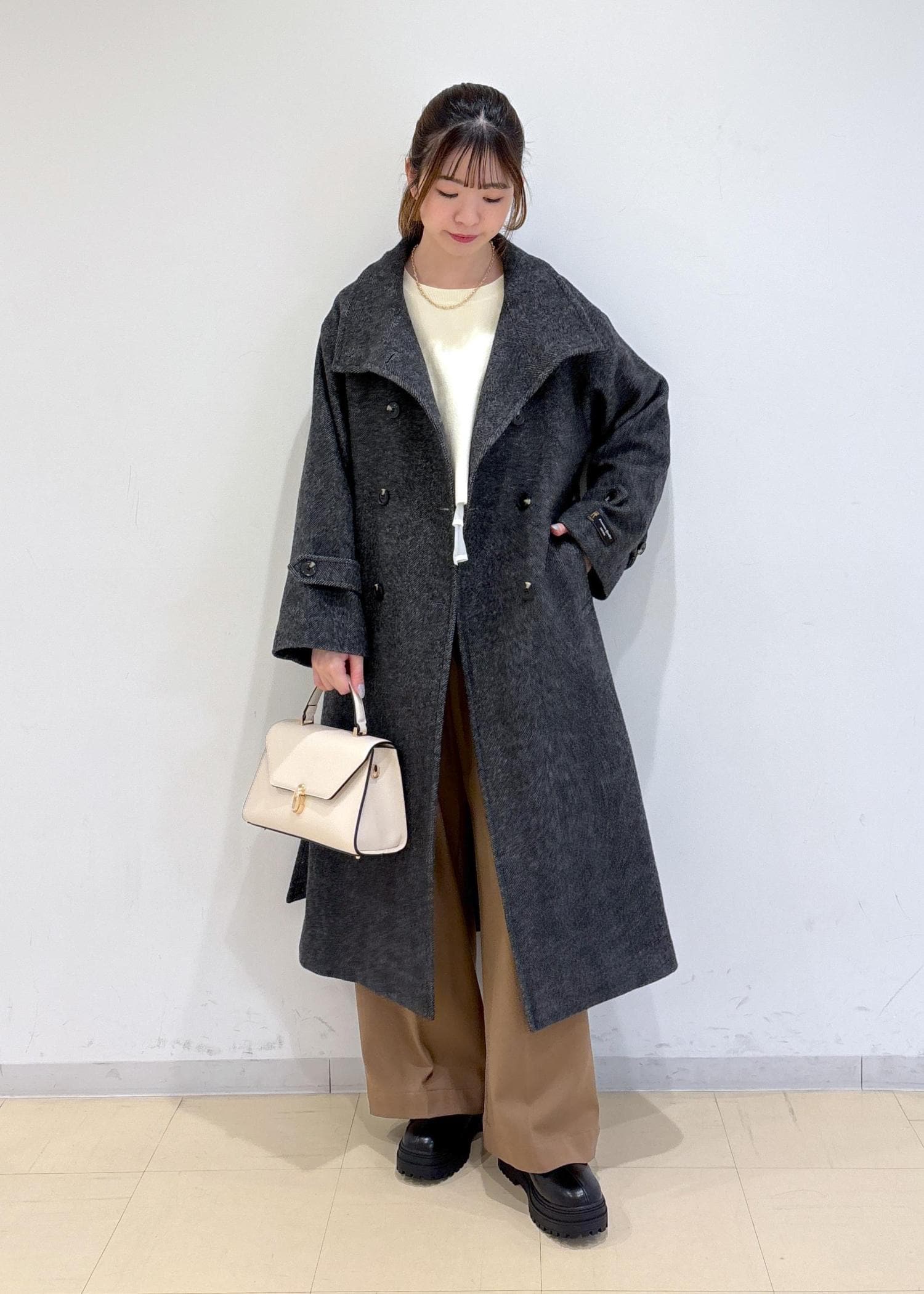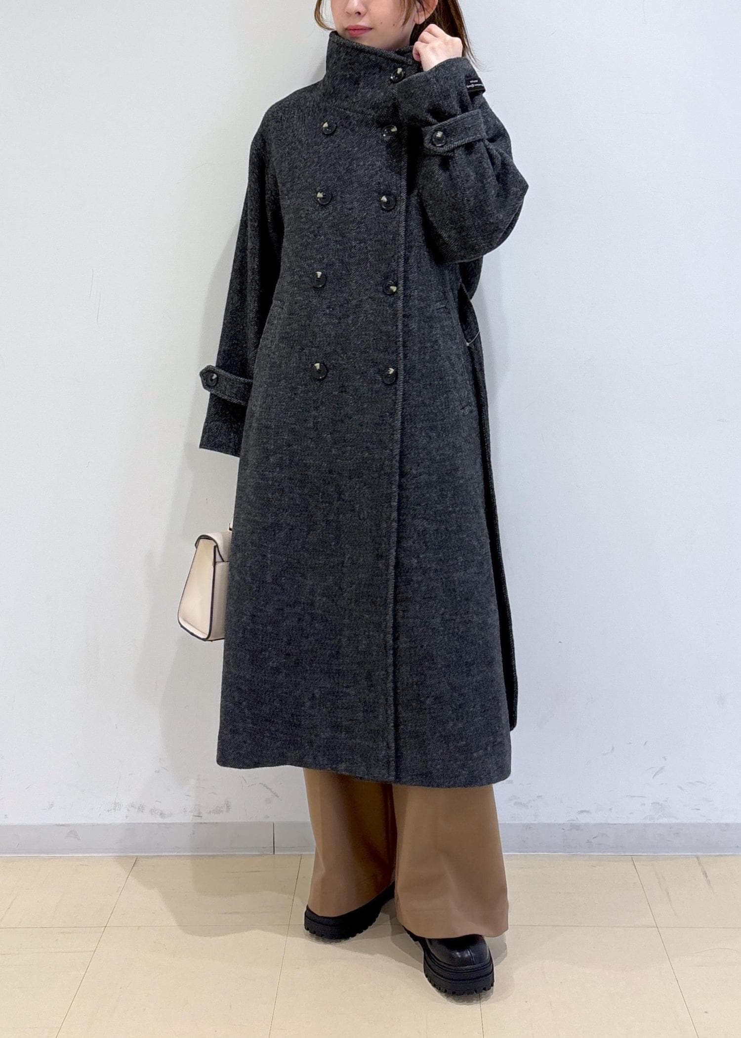 ウール混で暖かく、ロングコートなのに羽織心地軽くてストレスフリーで着用できます!