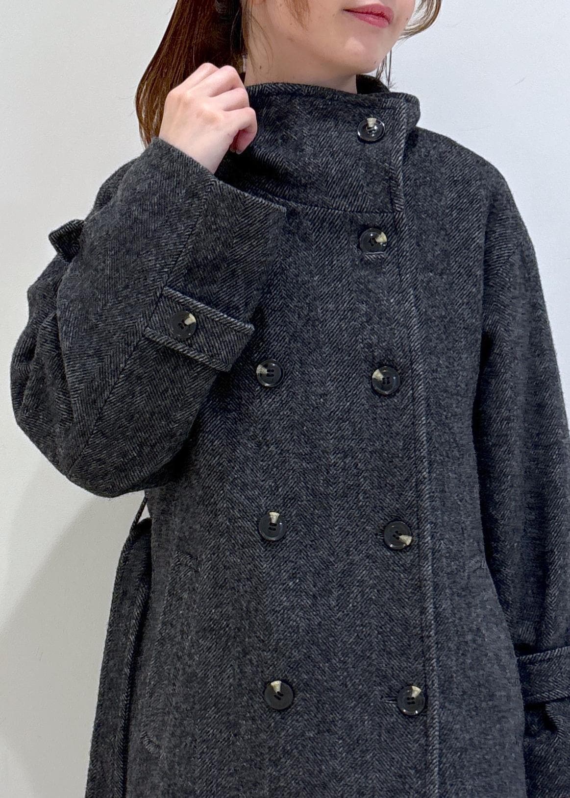 VIS尾州シャギースタンドカラーロングコート/静電気防止・WEB限定PS・TMサイズチャコール / M¥21,890レビュー163cmでMサイズ着用。