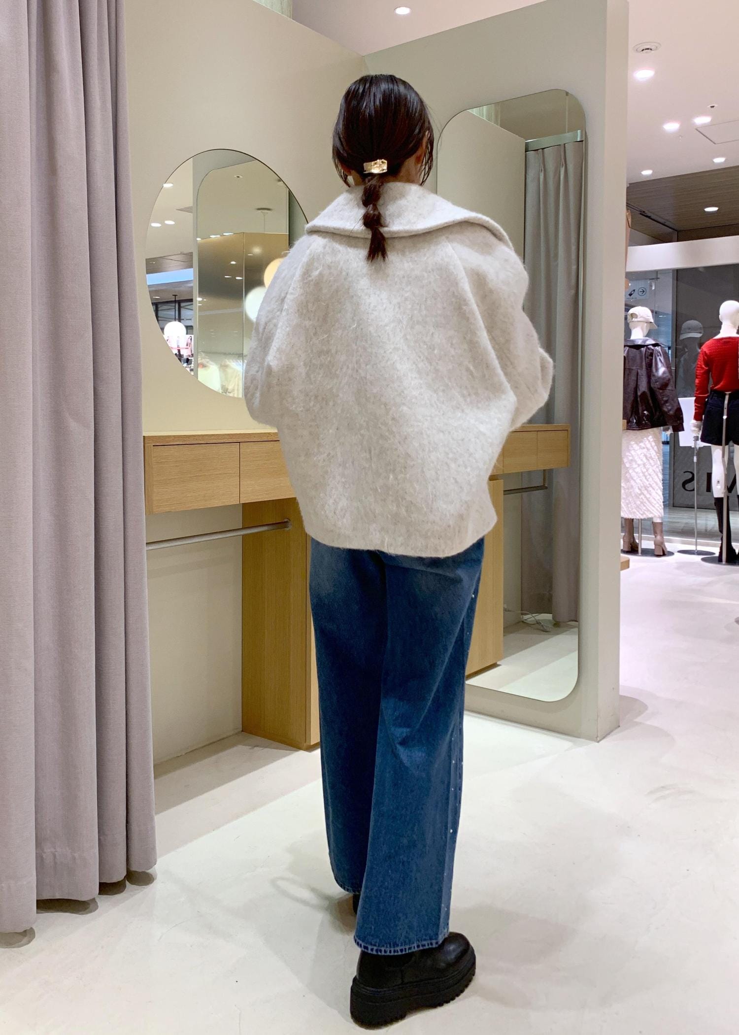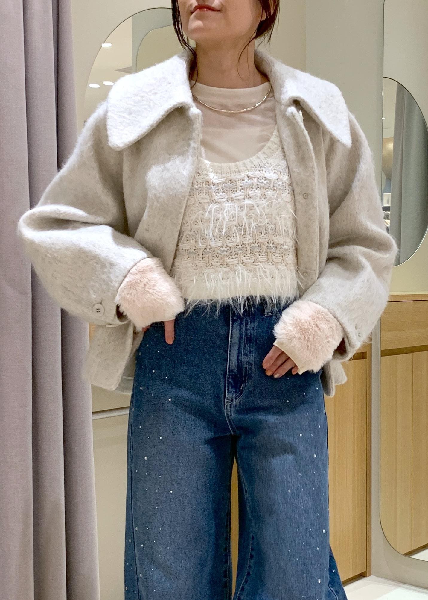 VIS【アウター総選挙1位】ビッグカラーモモンガシャギーショートコートオフホワイト / M¥10,989レビュー身長165cmでMサイズ着用しています。