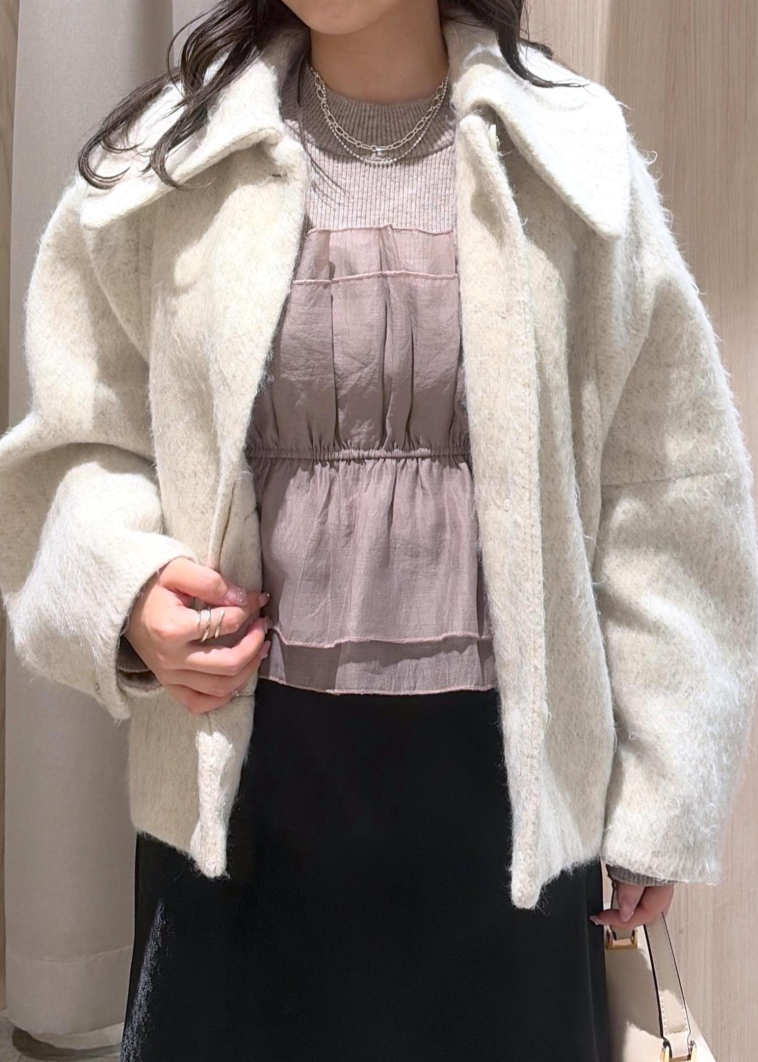 予約VIS【アウター総選挙1位】ビッグカラーモモンガシャギーショートコートオフホワイト / S¥10,989レビュー身長150cmでSサイズ着用です!お尻がしっかり隠れる丈感でした!ゆったりシルエットですが着膨れもせず、軽くてとても着やすいです◎