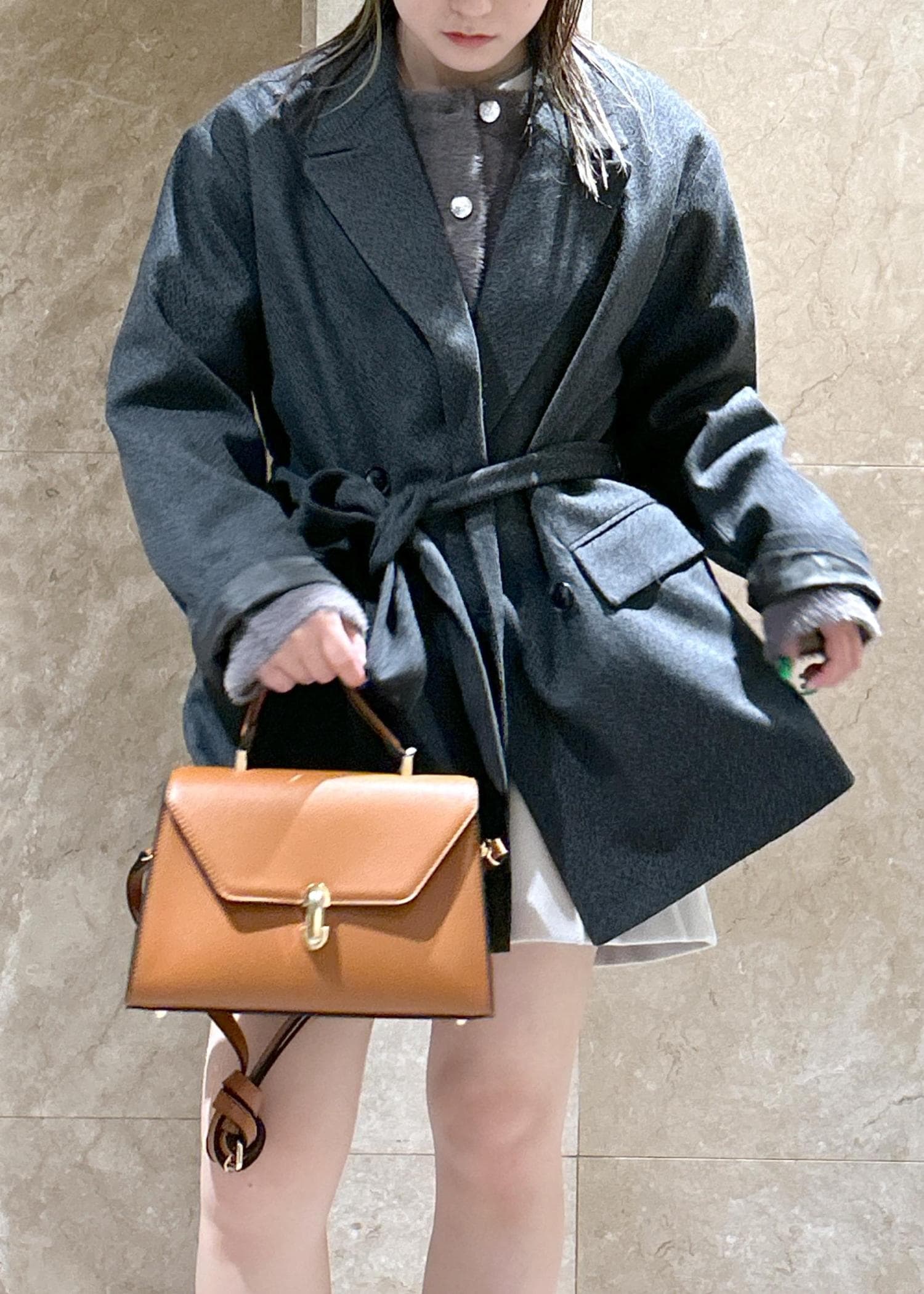 ジャケットですが、153cmの私がヒモを前で結んで着るとコートっぽく着れました。