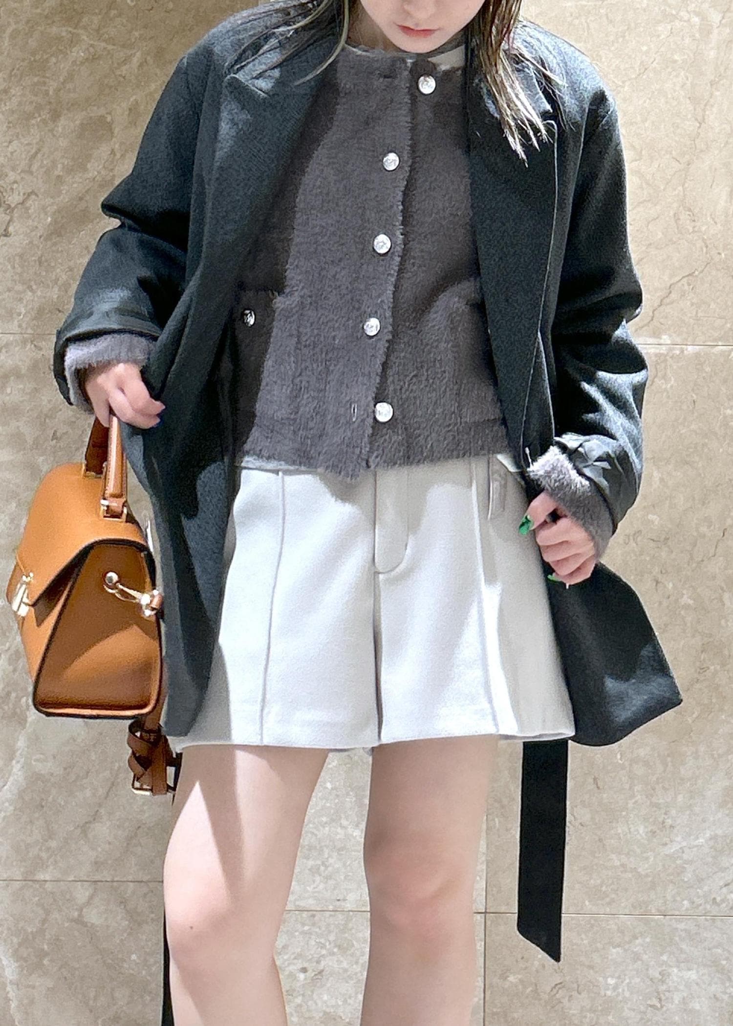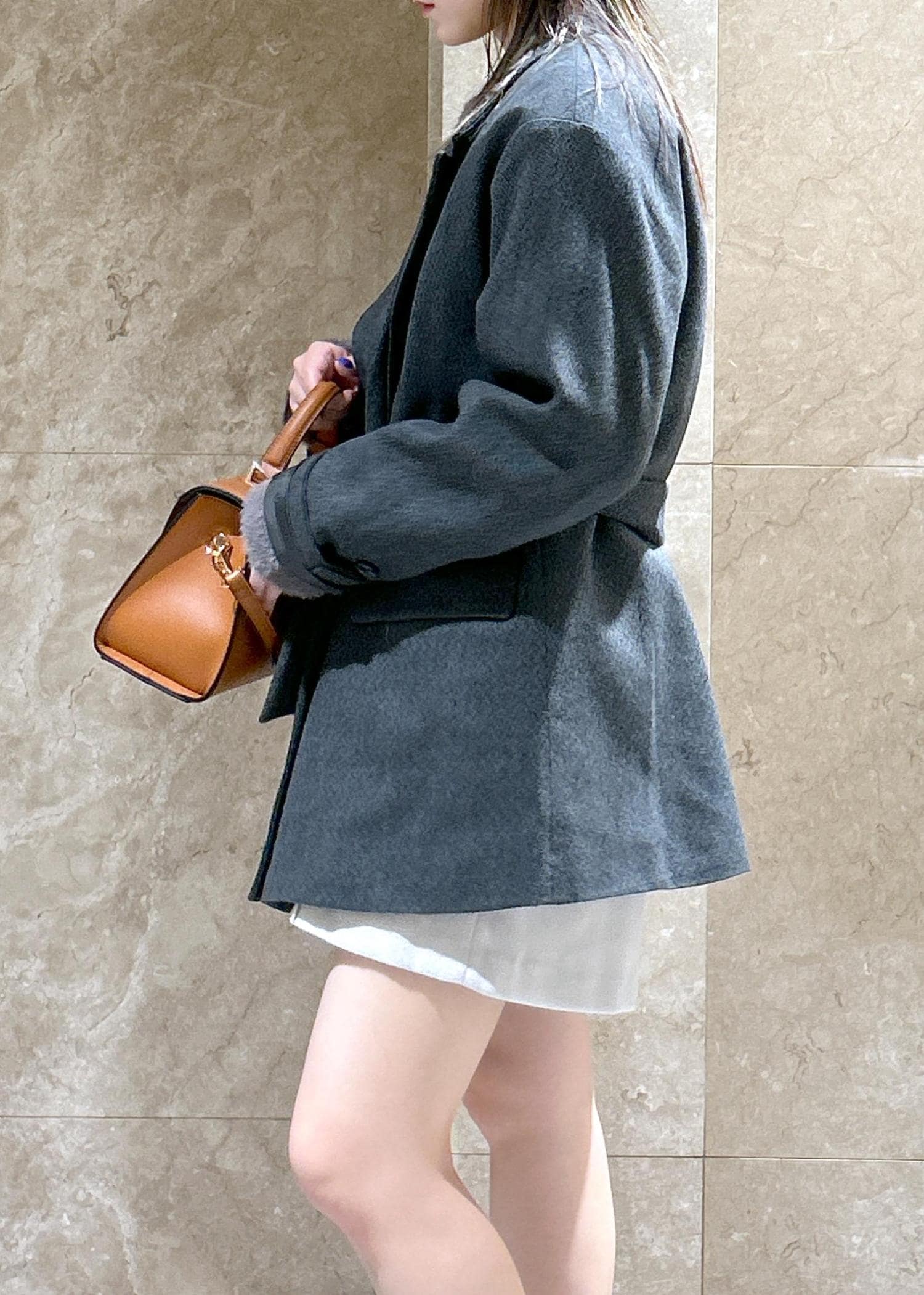 着丈は腰くらいと短く、パンツでもスカートでもワンピースでも!バランス良く着ていただけます! -