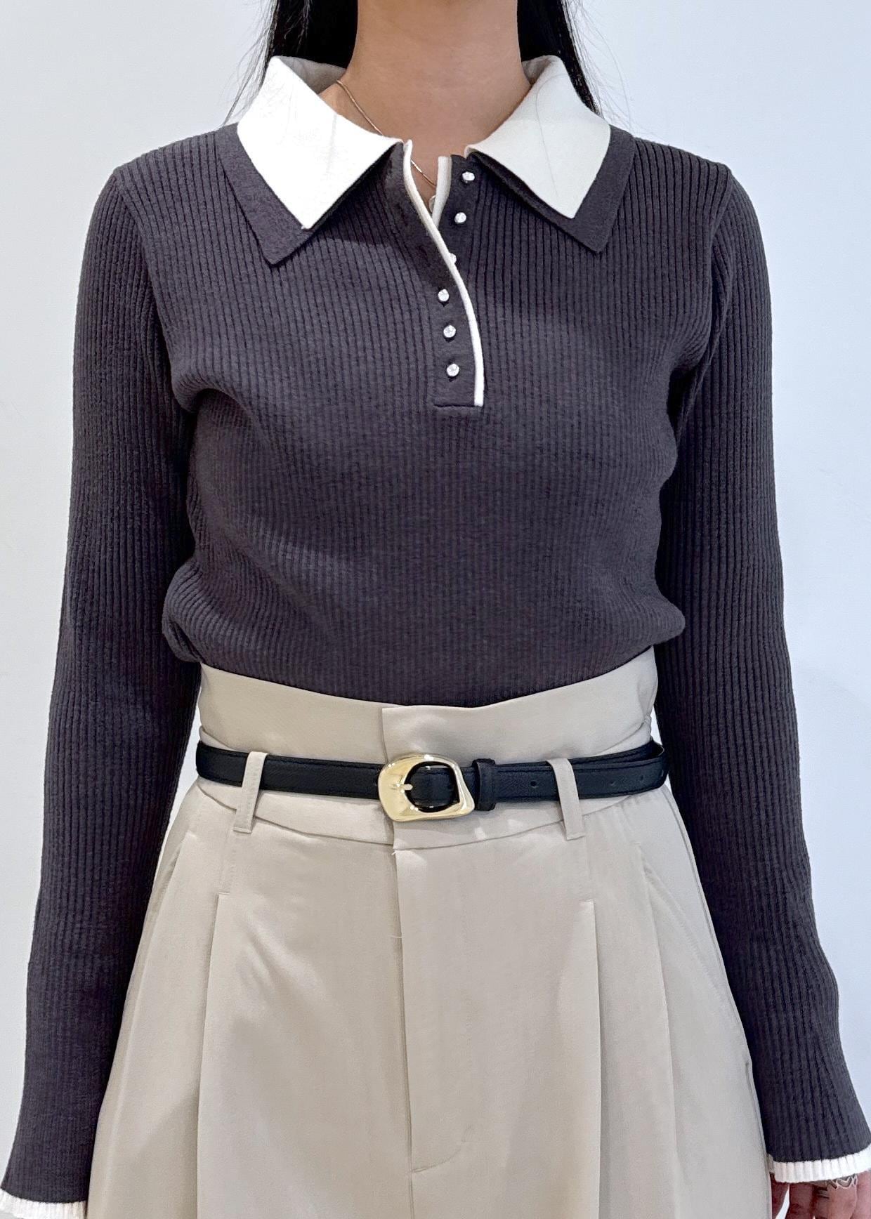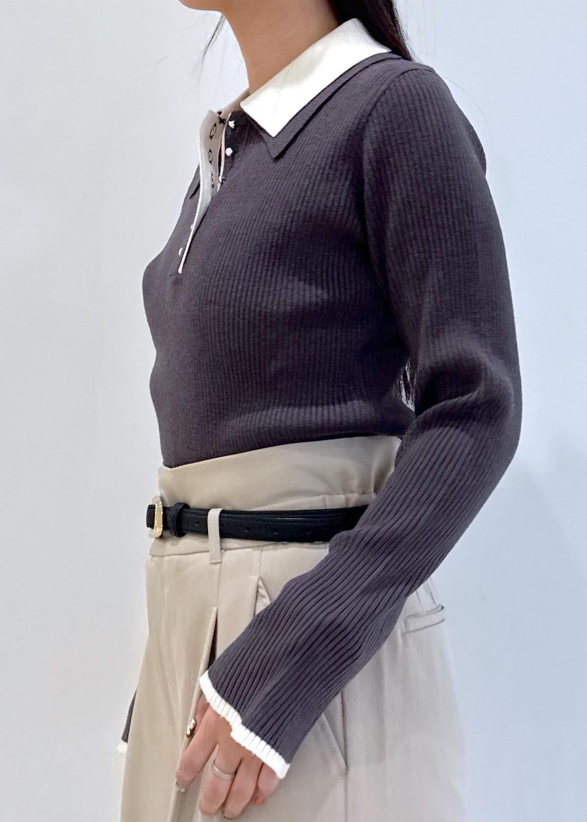 予約VISダブルカラーポロニットトップスチャコール / F¥5,929レビュー生地がすごく柔らかくて、肌触りとっても気持ちよかったです◎首元詰まっているのが苦手な方は、ボタンを少し開けて着用すると抜け感が出ます。丈は長くインが出来るので、お仕事使いもできます