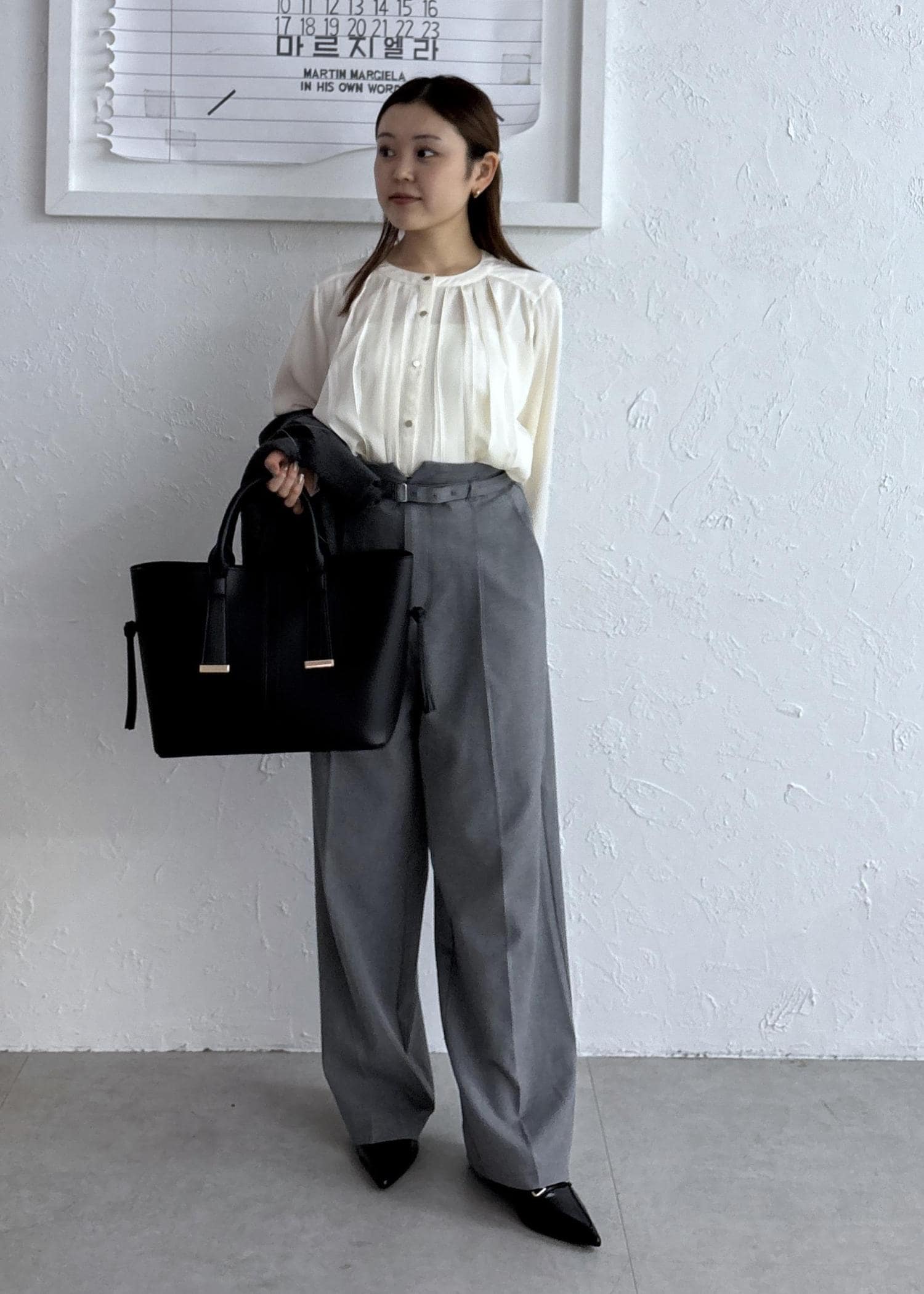 VISHot Beautyベルテッドスリムストレートパンツ/イージーケアグレー / S¥6,589レビューシンプルなデザインながらも、ゴールドの釦やプリーツデザインが華やかで女性らしい印象を与えてくれるブラウス◎透け感があるため、同系色のインナーを中に入れ着用頂くのがオススメです。