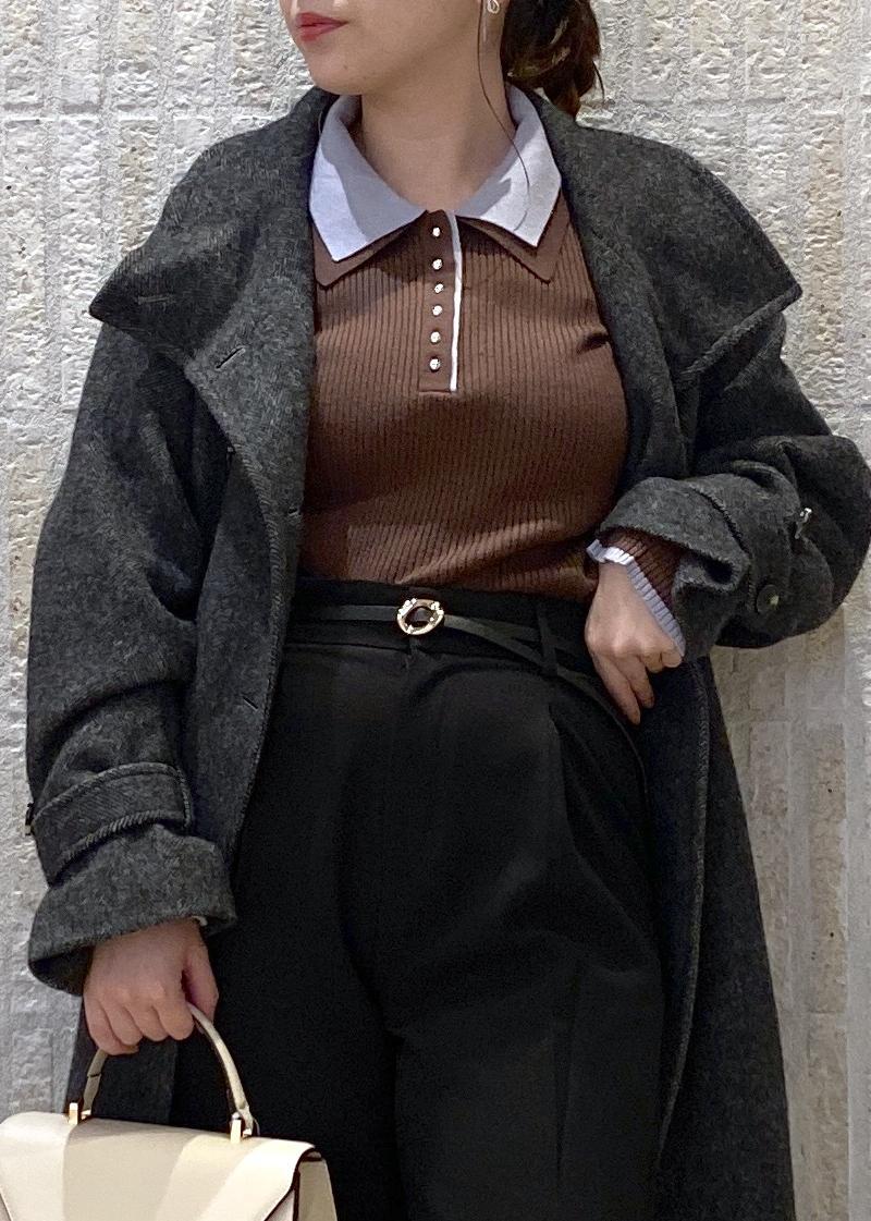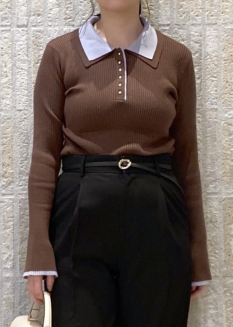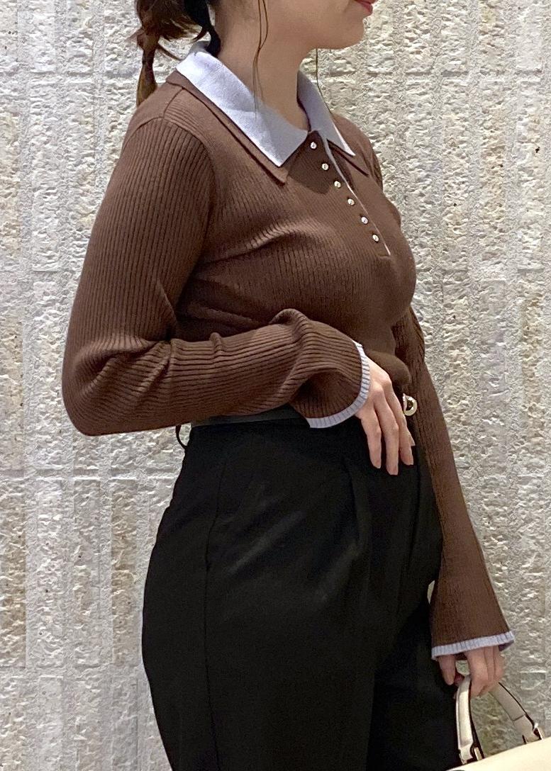 予約VISダブルカラーポロニットトップスブラウン / F¥5,929レビュー今年人気の2重衿デザインのポロ衿ニットです!