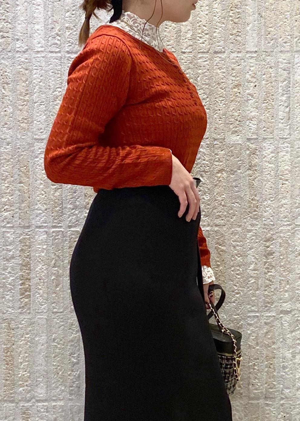 ニットスカートと合わせたコーデです❤︎