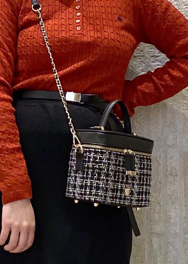 バッグにツイード素材のものを合わせてladyコーデに。