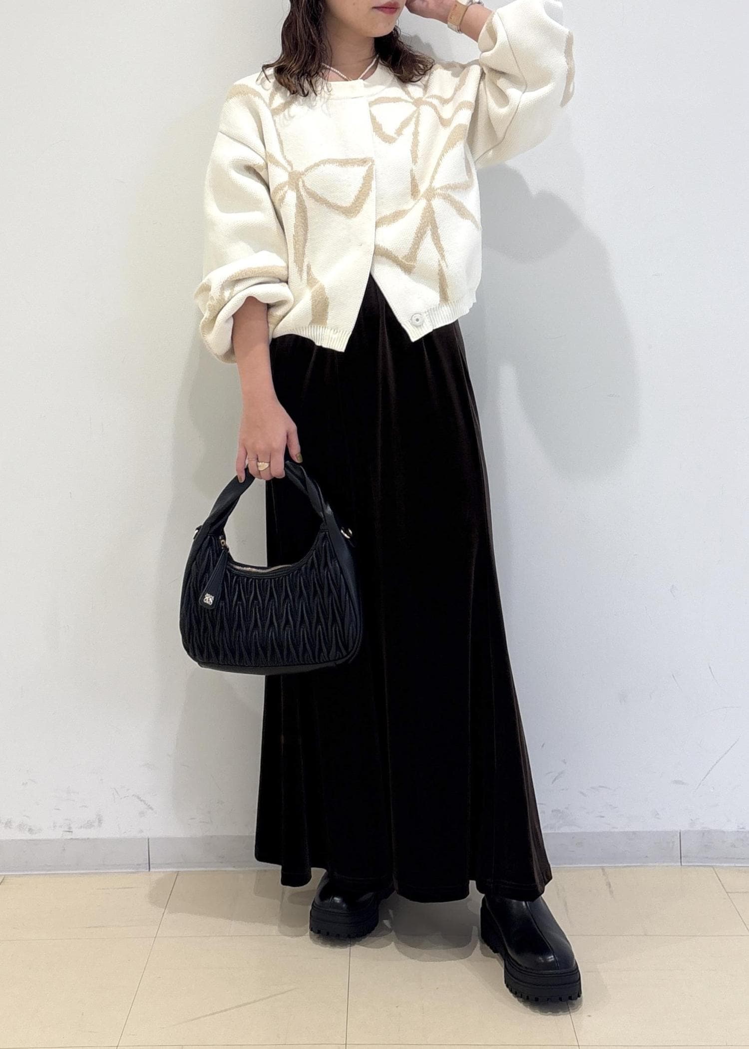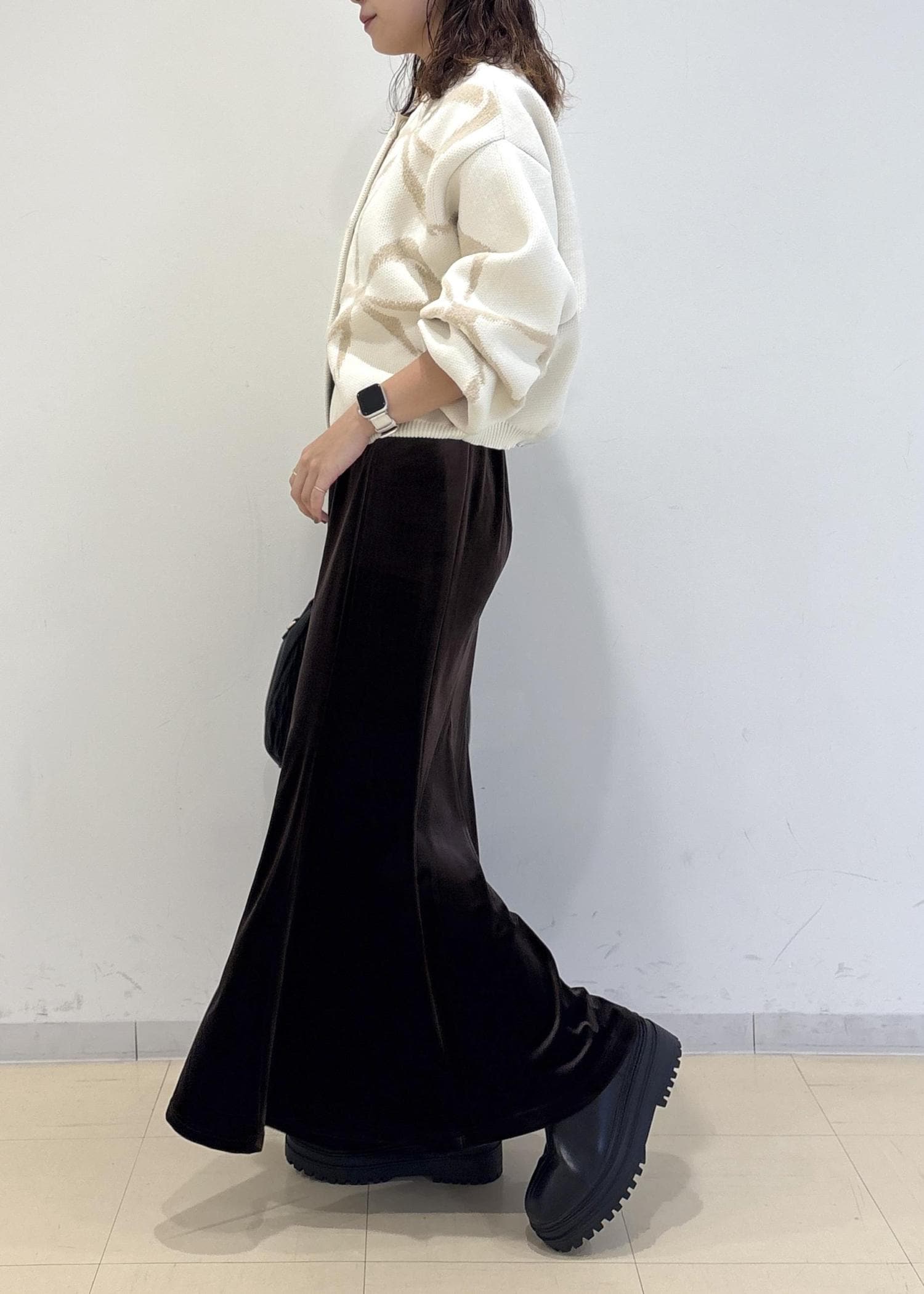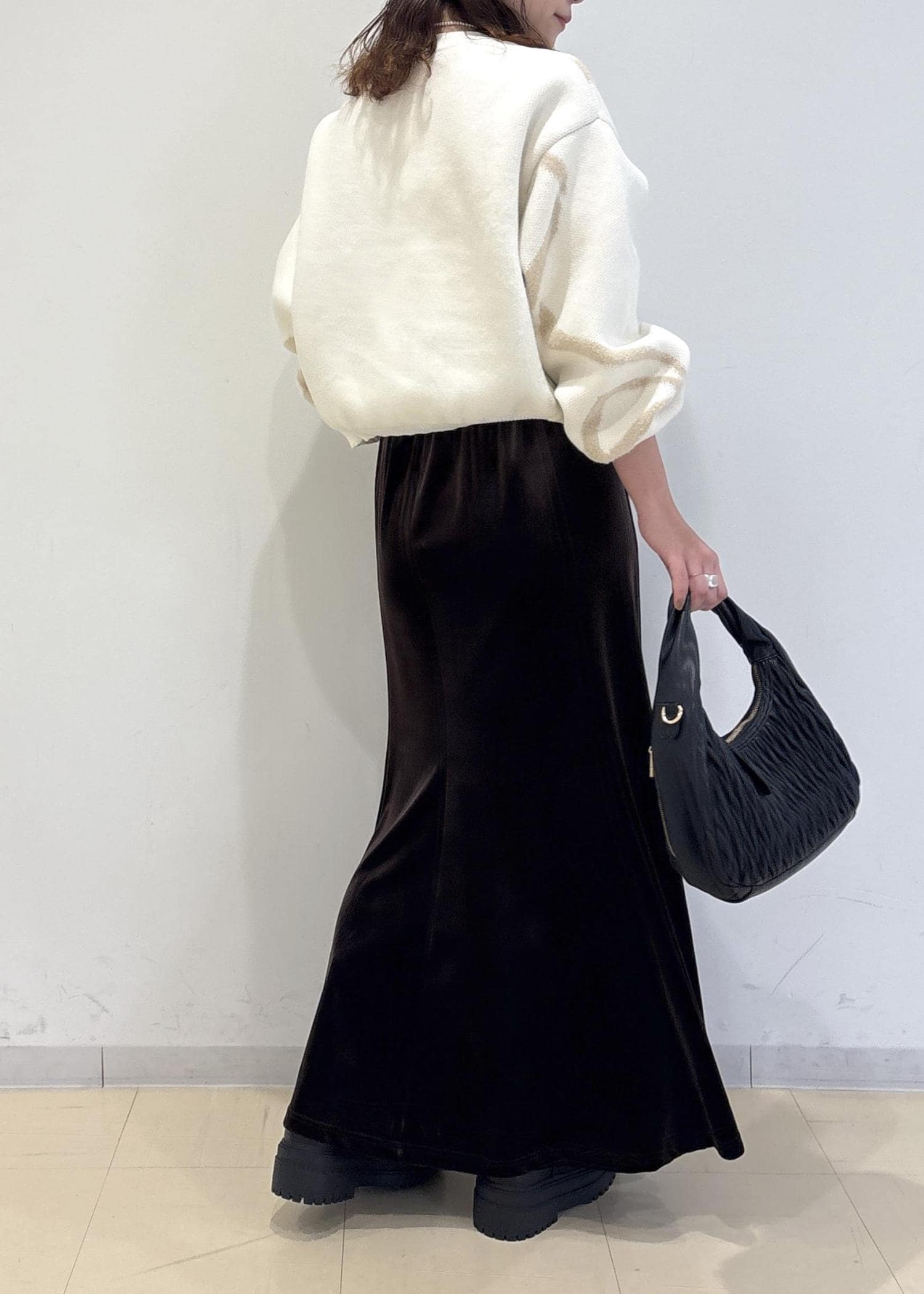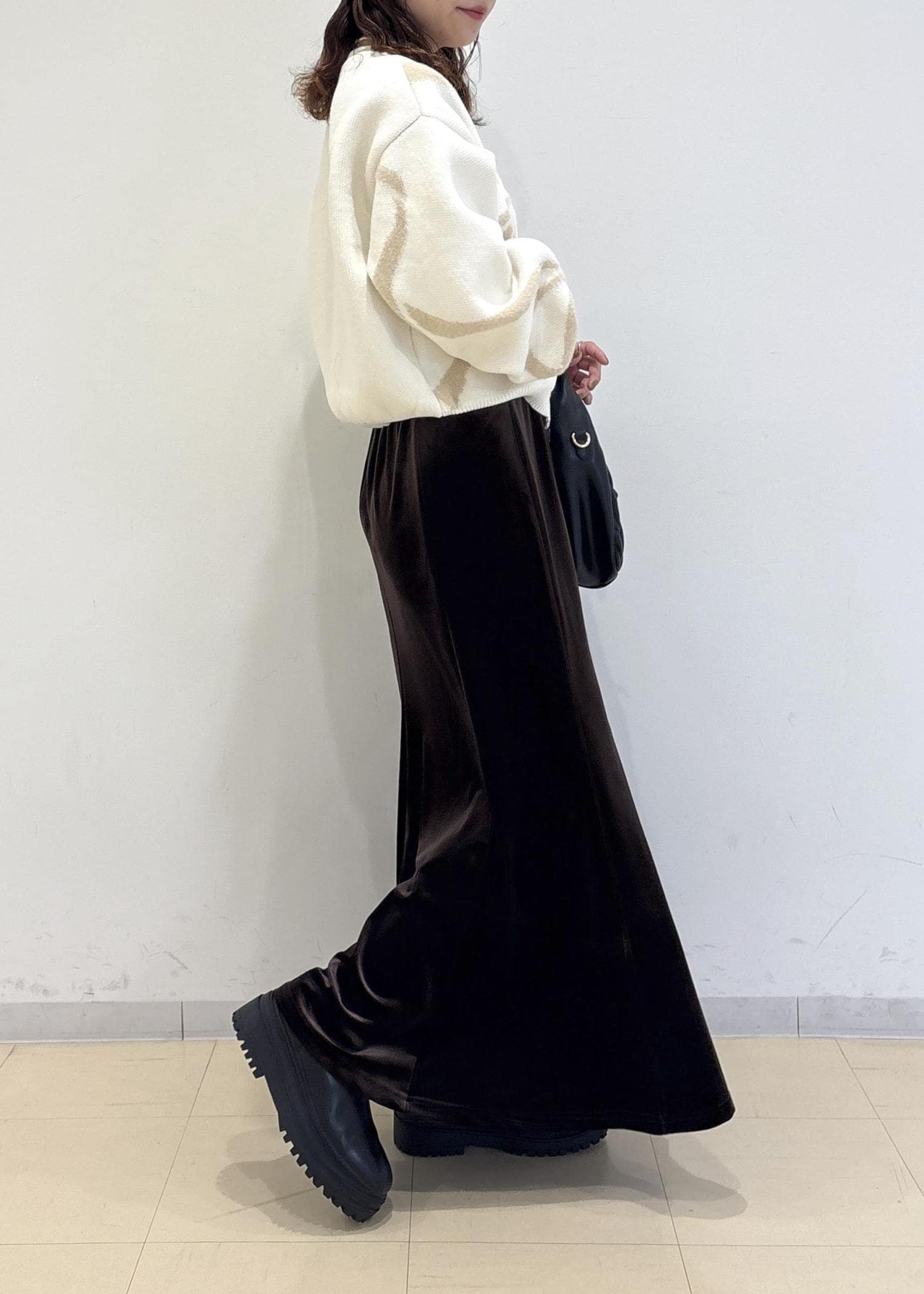 ベロア素材のロングスカートを合わせた大人カジュアルコーデ!