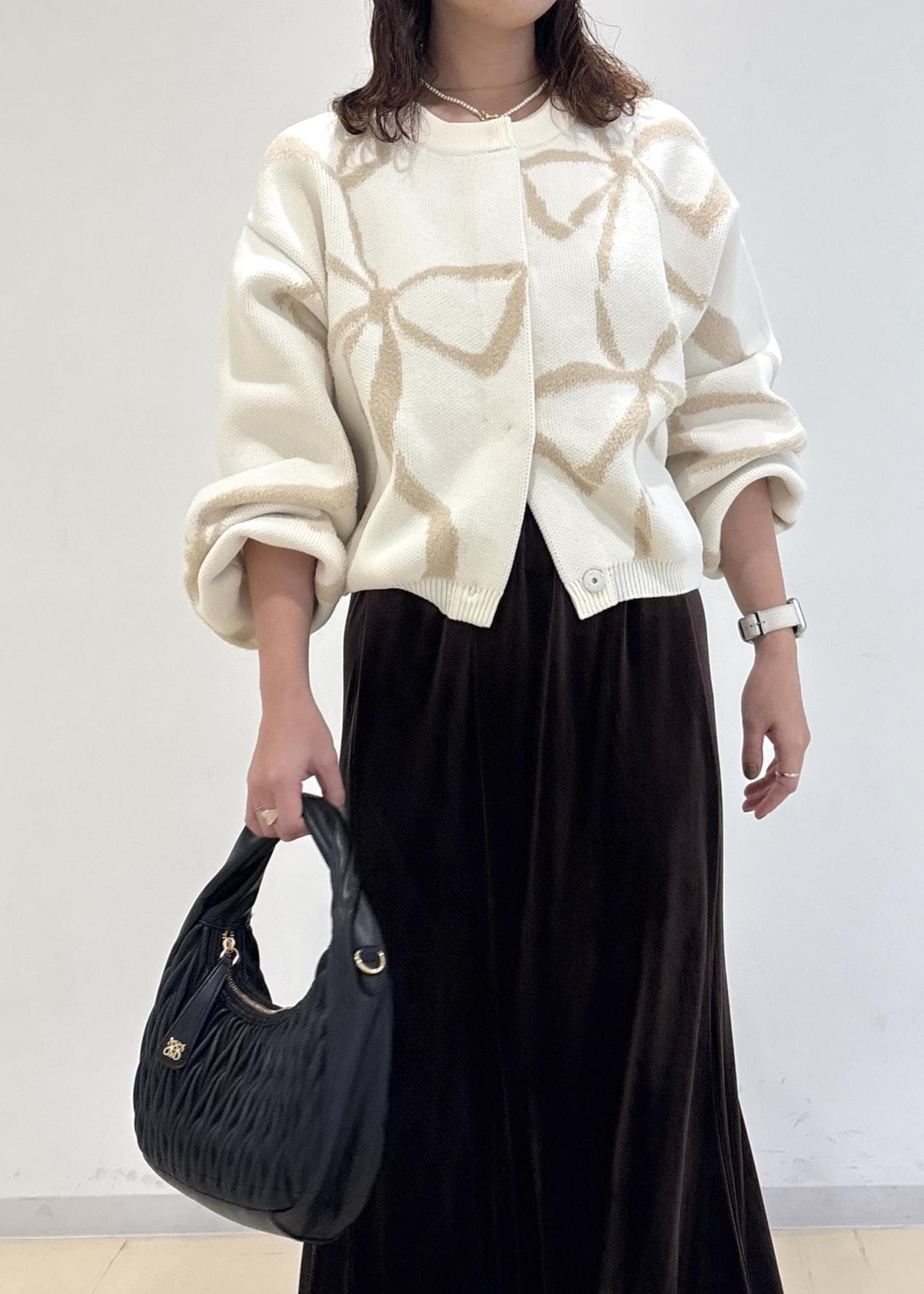 VISリボンモチーフジャガードカーディガン/イージーケアキナリ / F¥6,919レビュー160cm着用で骨盤に掛かる程の丈感です。