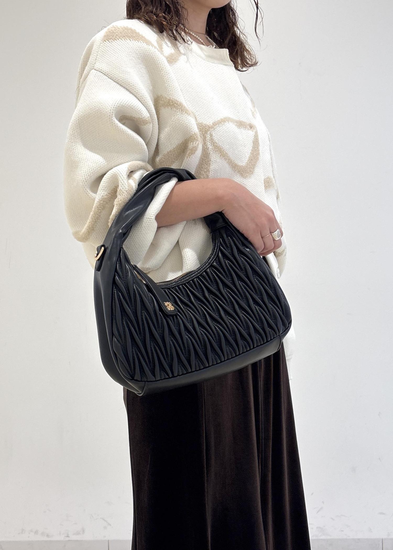 VIS【2WAY】ねじりハンドルキルティングバッグブラック / F¥7,909レビュー持つだけでオシャレなキルティングバック!