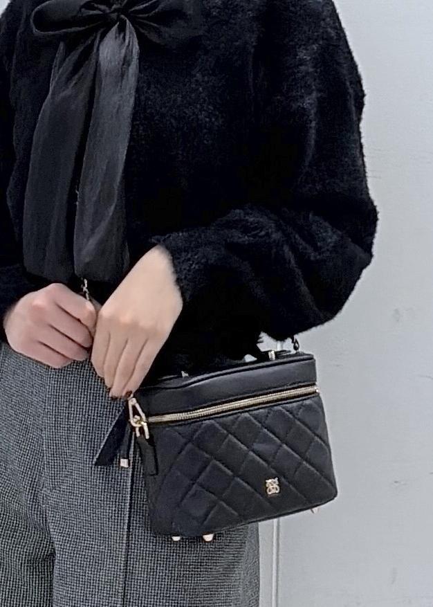 VISファーハンドルキルティング&ツイードバニティバッグ/2WAYブラック / F¥7,909レビュー取っ手のファーは取り外し可能です!!