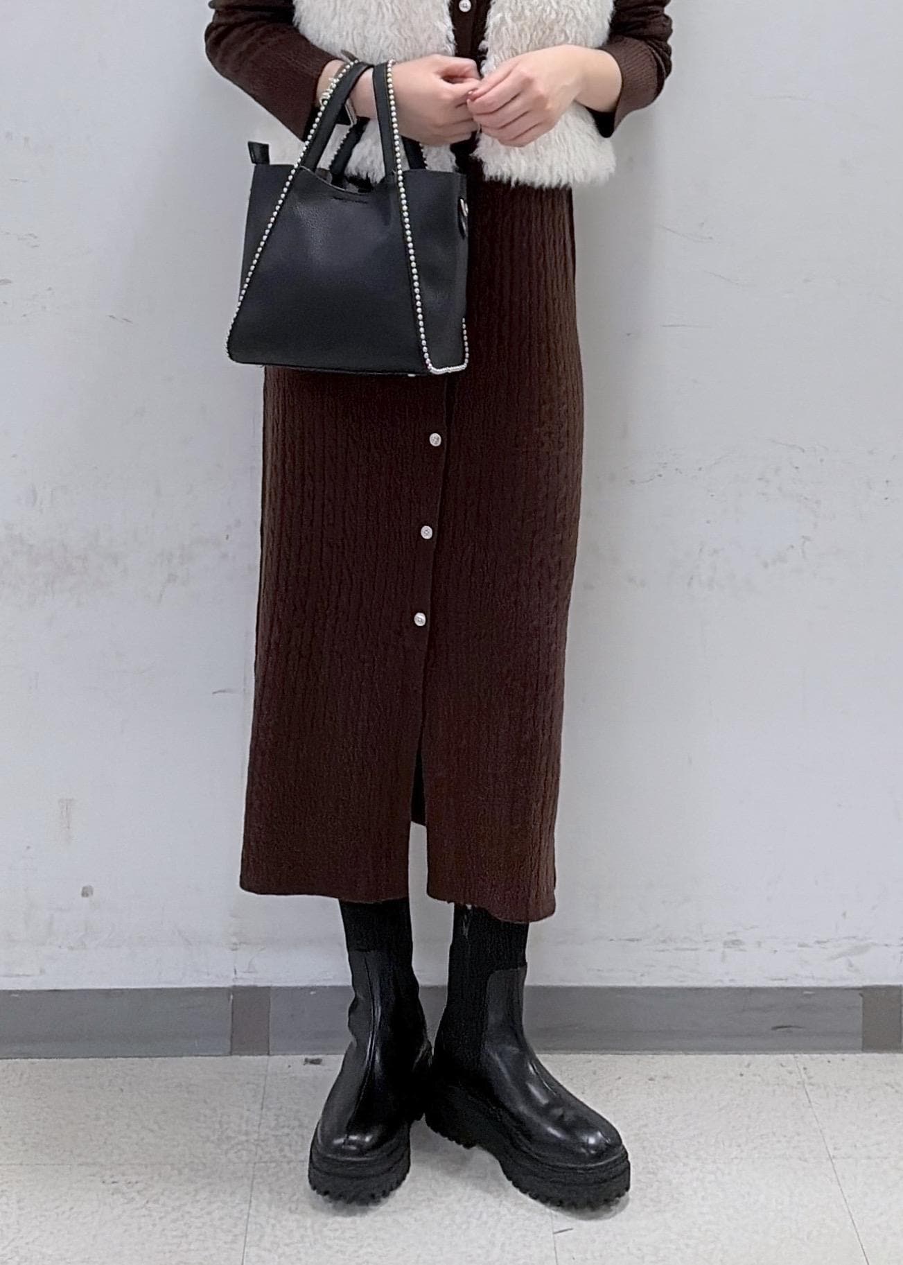 ニットワンピですが、ゆったりしていてあまり体のラインも拾わないので気にせず着用できます◎