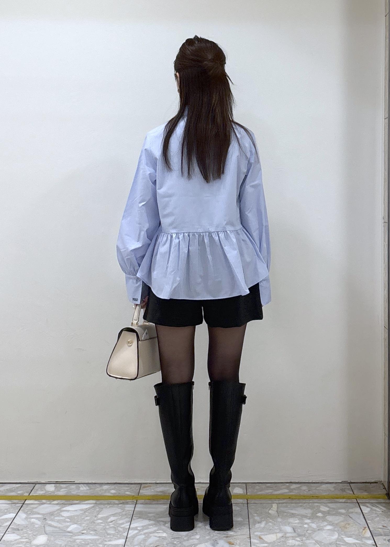 VIS【POLO BCS】VIS別注ペプラムデザインシャツサックス / F¥6,930レビューフワッとしたシルエットですが、スッキリした丈感でスタイルアップして見えます◎