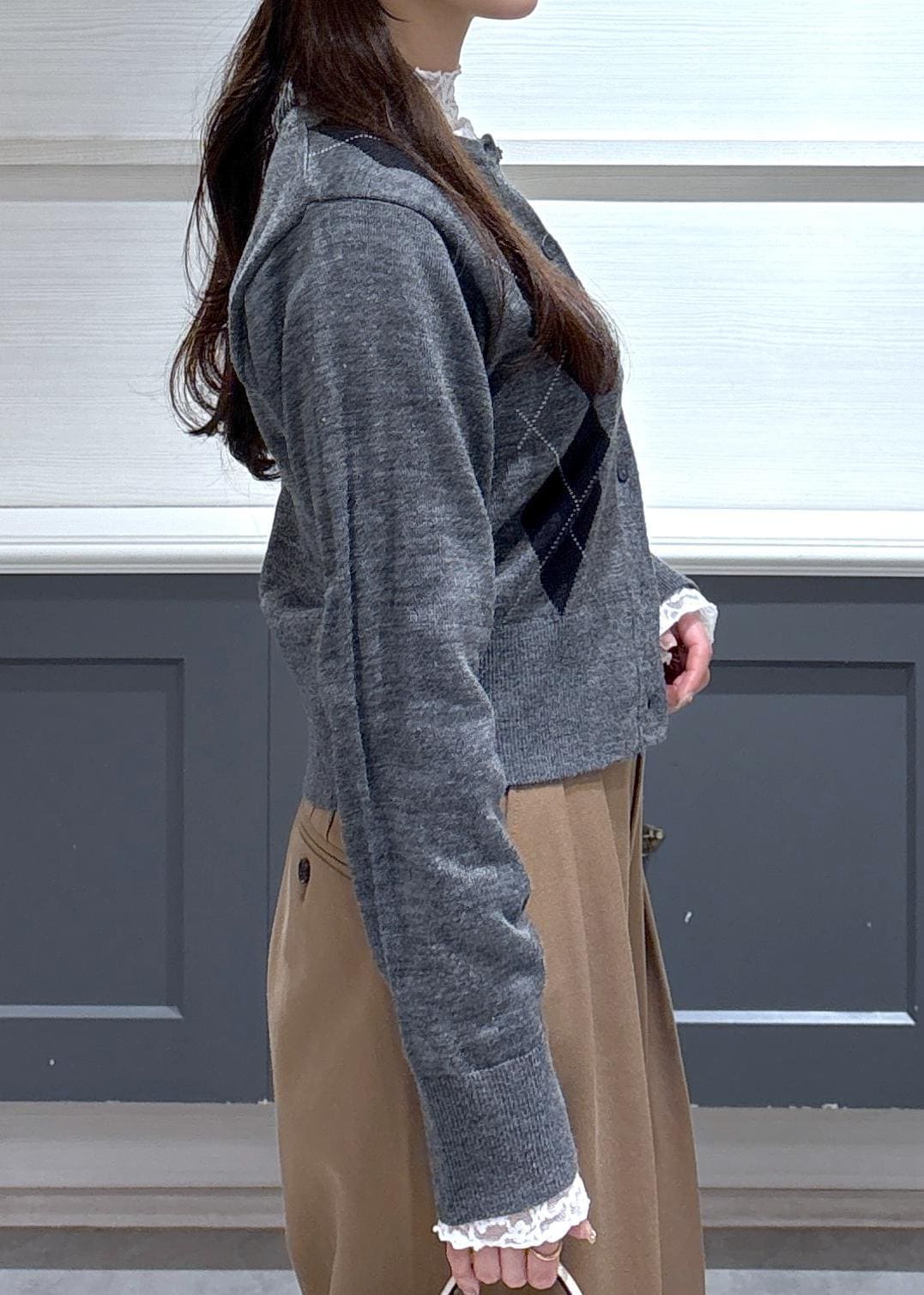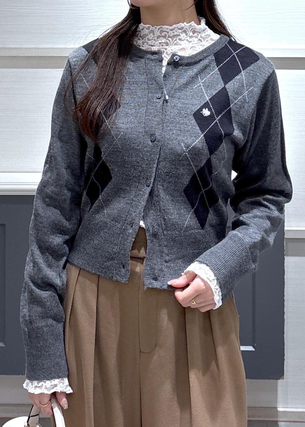VIS【POLO BCS】VIS別注アーガイルニットカーディガンチャコール / F¥7,920レビュー156cmで腰がしっかり隠れる丈感でした。