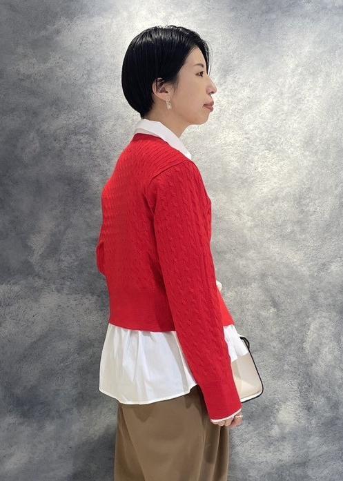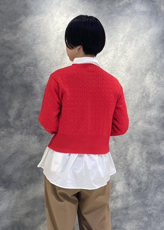 VIS【POLO BCS】VIS別注ミニケーブルノーカラーニットカーディガンレッド / F¥6,930レビュー柔らかな素材でチクチク感無く着て頂けます。