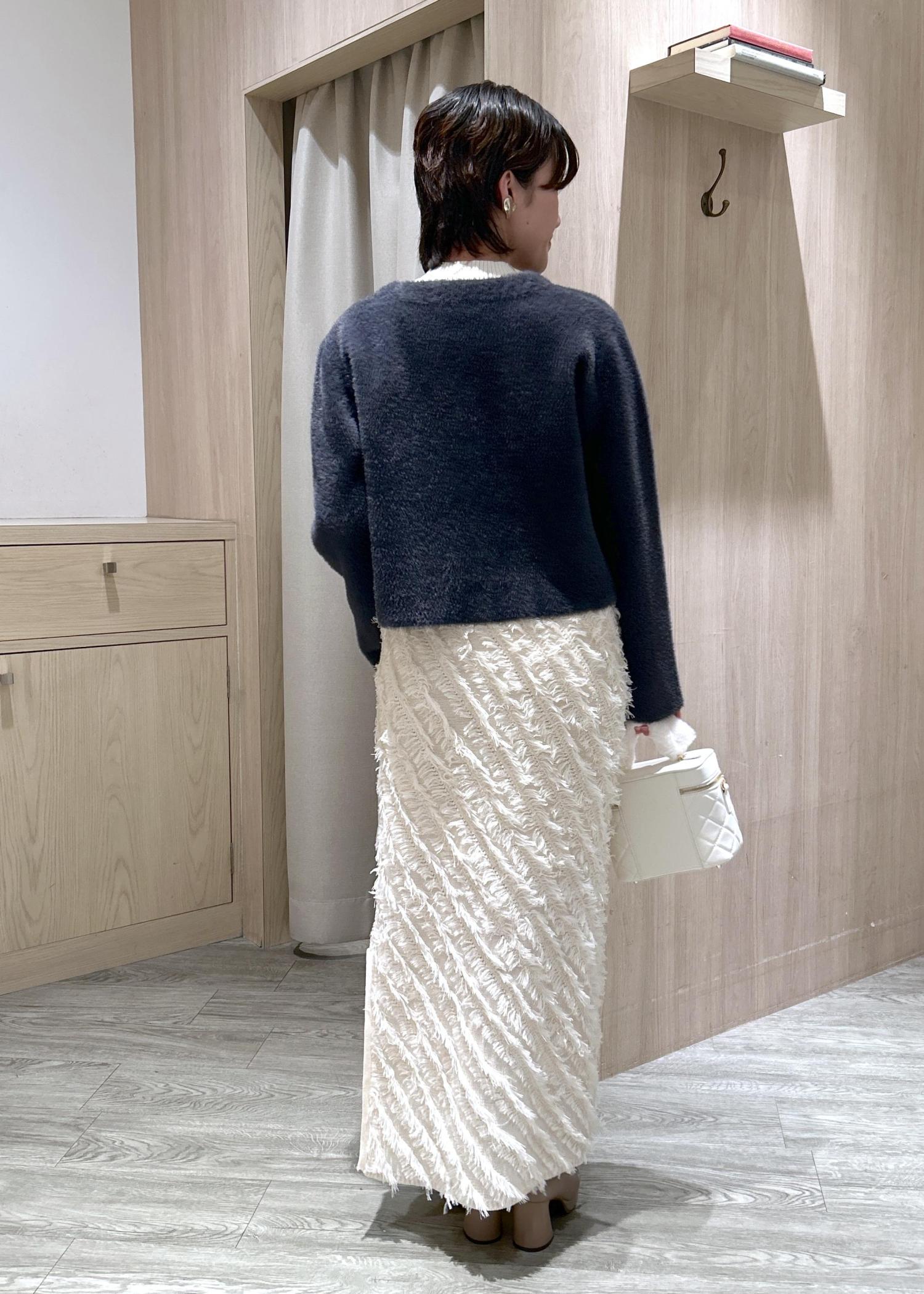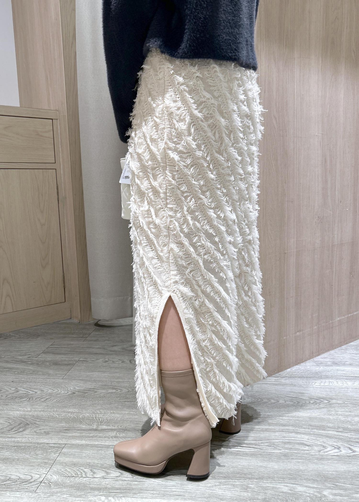 VISフリンジニットナロースカートキナリ / F¥4,612レビュー身長155cm、ヒールの靴を履いて踵が隠れる長さです。