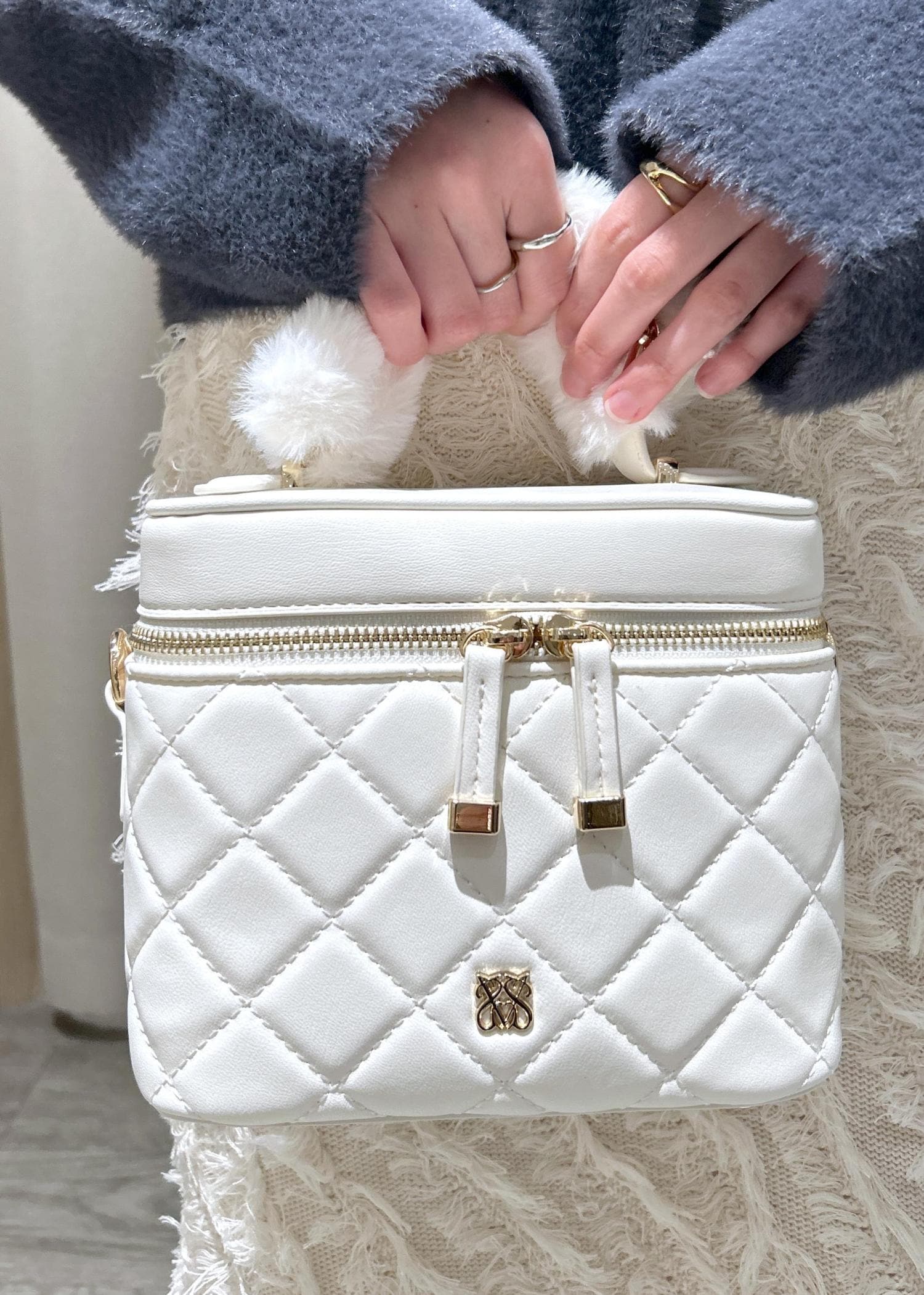VISファーハンドルキルティング&ツイードバニティバッグ/2WAYオフホワイト / F¥7,909レビュー取手部分のファーは取り外し可能なので、お洋服やシーズンに合わせて持っていただけます!