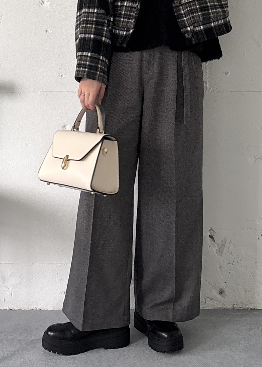 VIS起毛ウールライク版ベルトディテールタックワイドパンツグレー / M¥6,589レビュー165cmでMサイズ着用、くるぶし上くらいの丈感です!