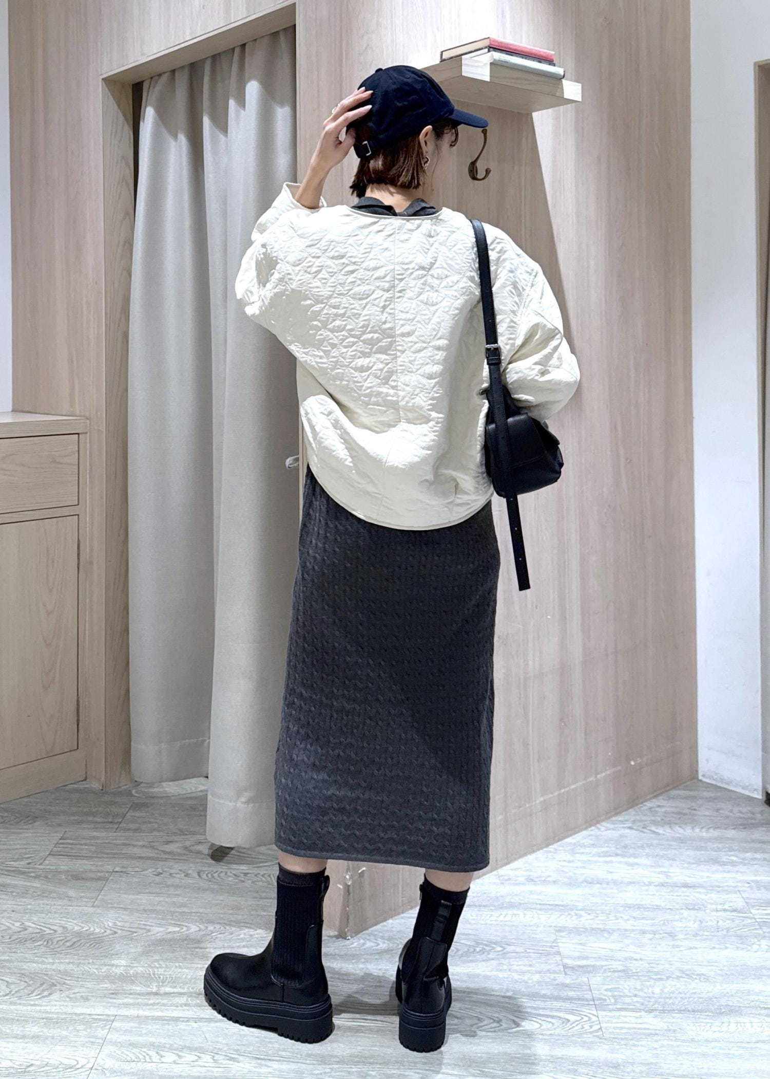 ケーブル編みのニット生地なので、体のラインを拾いすぎず1枚でも着やすかったです◎