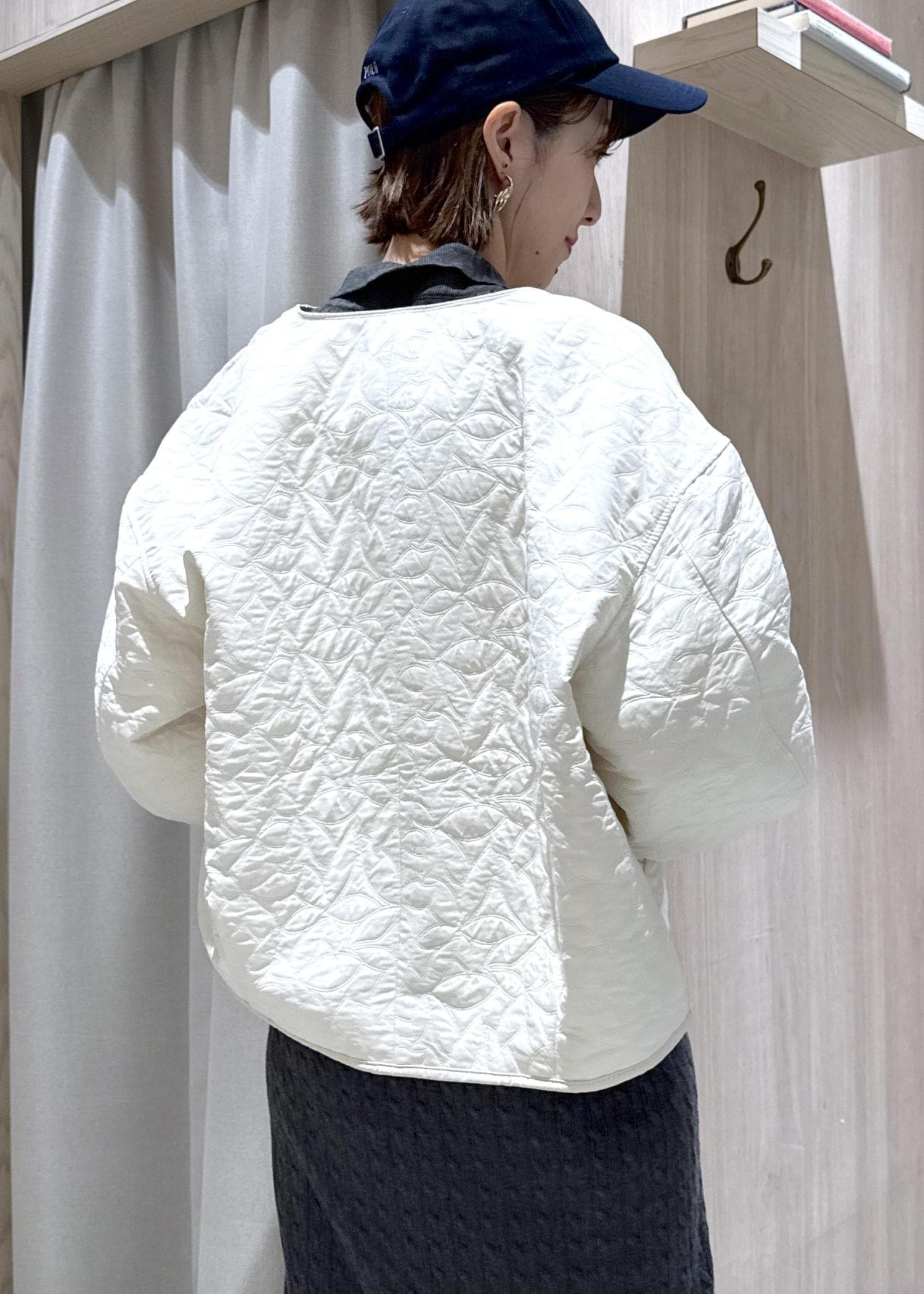 VIS合皮パイピングキルトアソートブルゾンオフホワイト / F¥8,899レビュー身長166センチで後ろはややお尻掛かる長さでした。