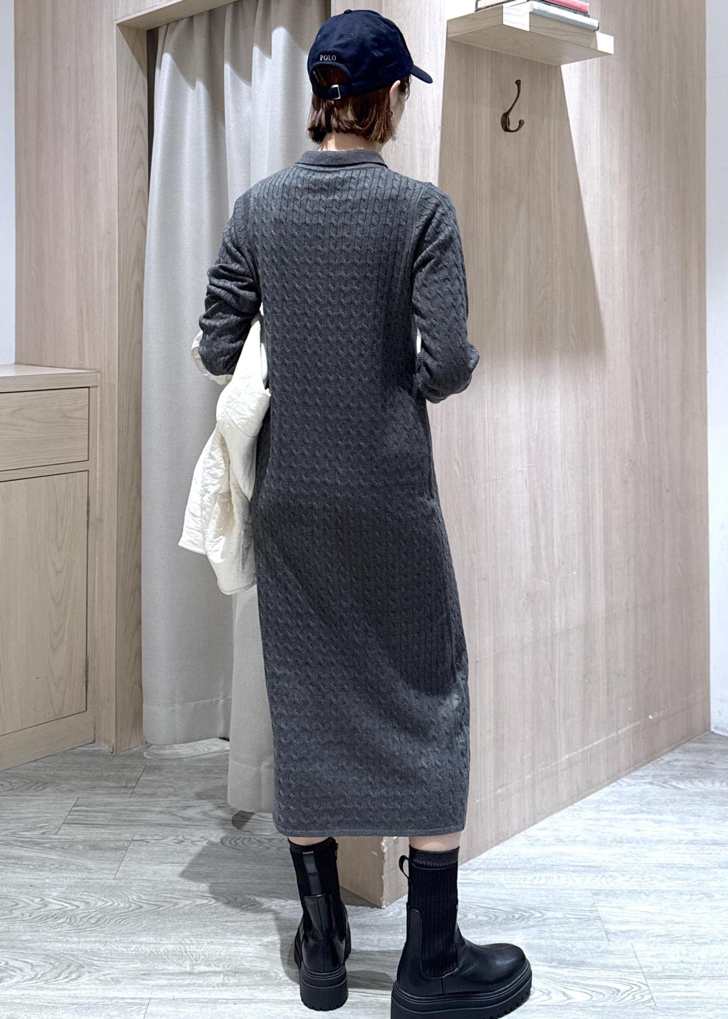 VIS【POLO BCS】VIS別注ニットワンピースチャコール / F¥9,900レビュー身長166センチでふくらはぎの長さでした。