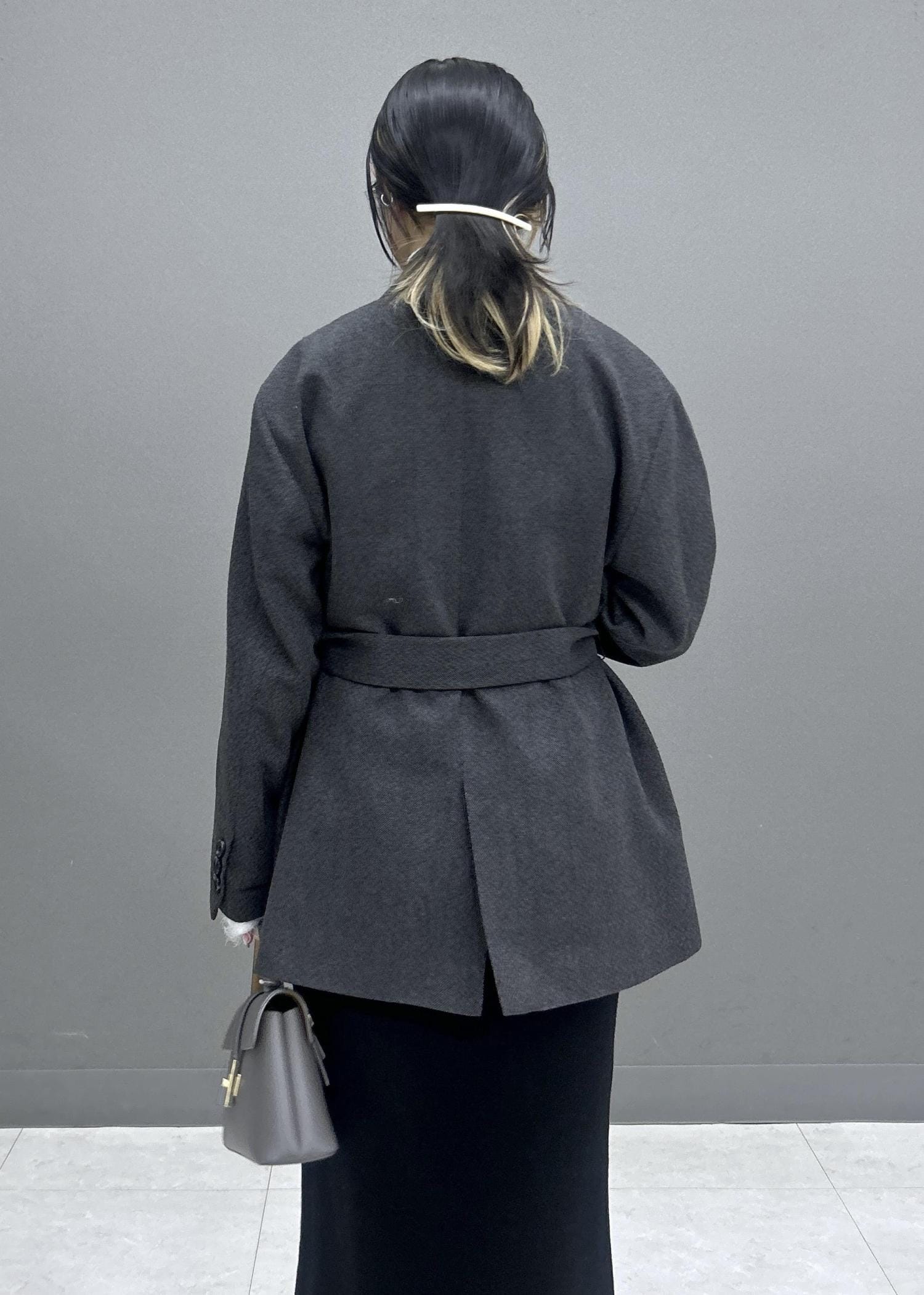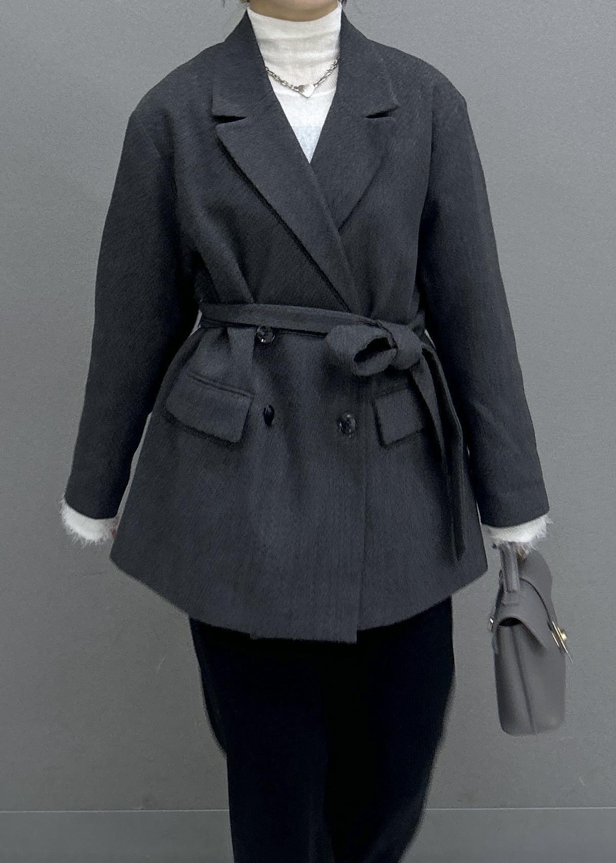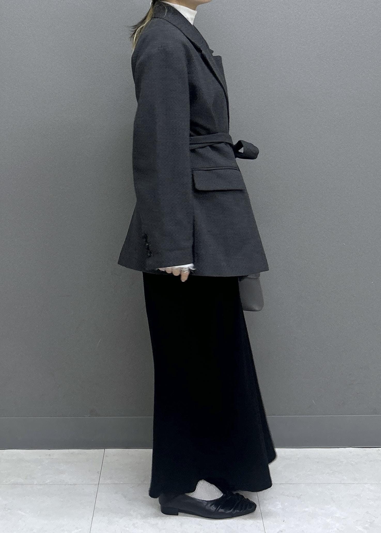 VISヘリンボーンツイードベルテッドジャケット/セットアップ対応チャコール / F¥7,999レビュー157cmでお尻がすっぽり隠れる着丈です。