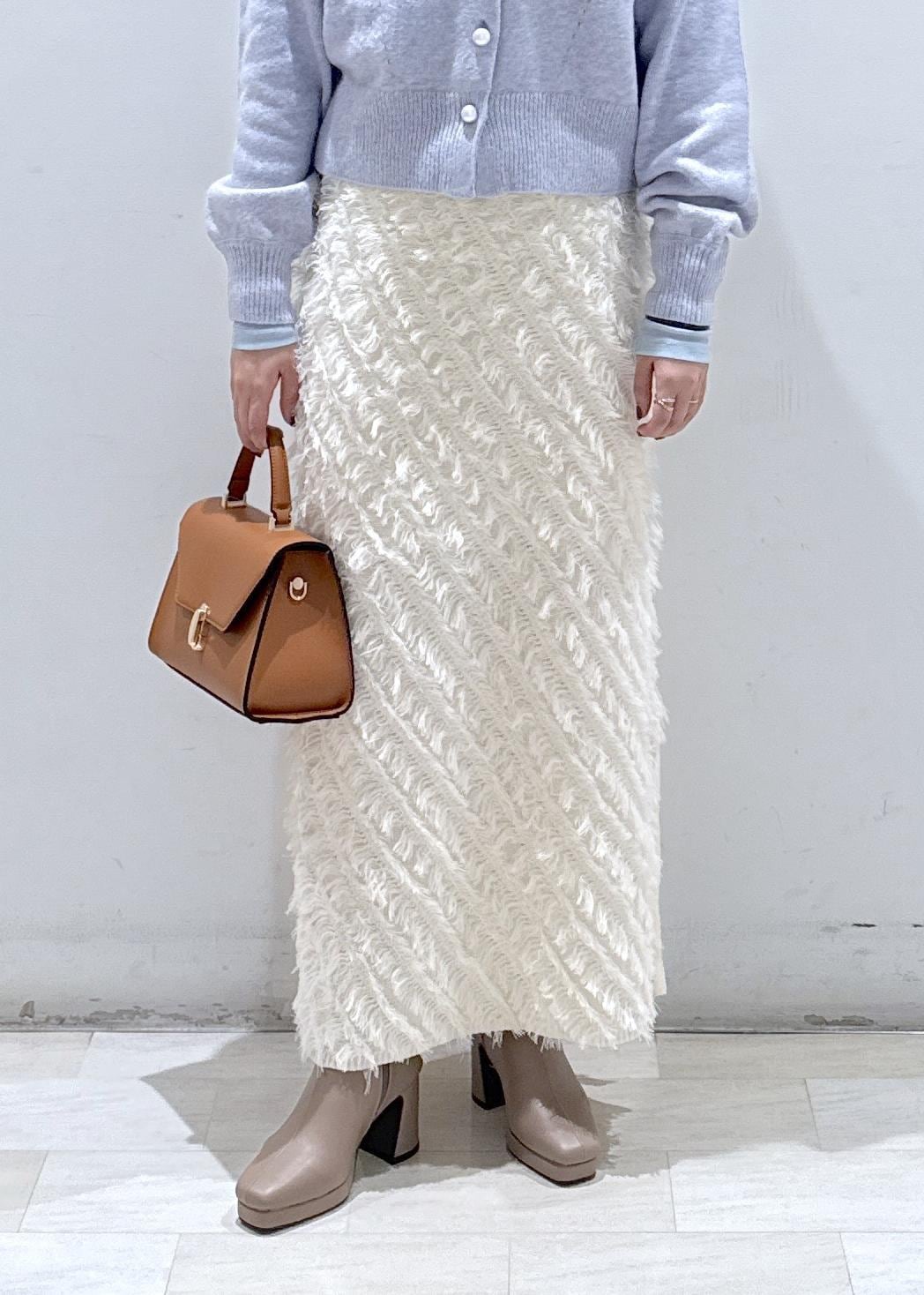 VISフリンジニットナロースカートキナリ / F¥6,589レビューフリンジの効いたIラインスカート♪身長157cm/Fサイズ着用。ウエスト全体がゴムが効いているので、伸び感があって履きやすいです!スリットも入っていて歩きやすく、キナリの色でも裏地付きだから透け感を気にせず履けるのもgood◎身体にピッタリし過ぎず、ゆったりとしているので綺麗めでもカジュアルでも履けそうです。